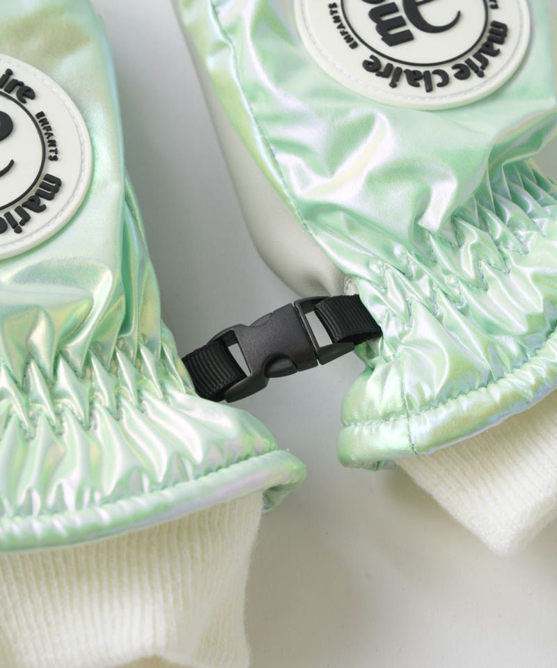 光の加減で色合いが変わるオーロラカラーが目を引くスノーミトン。