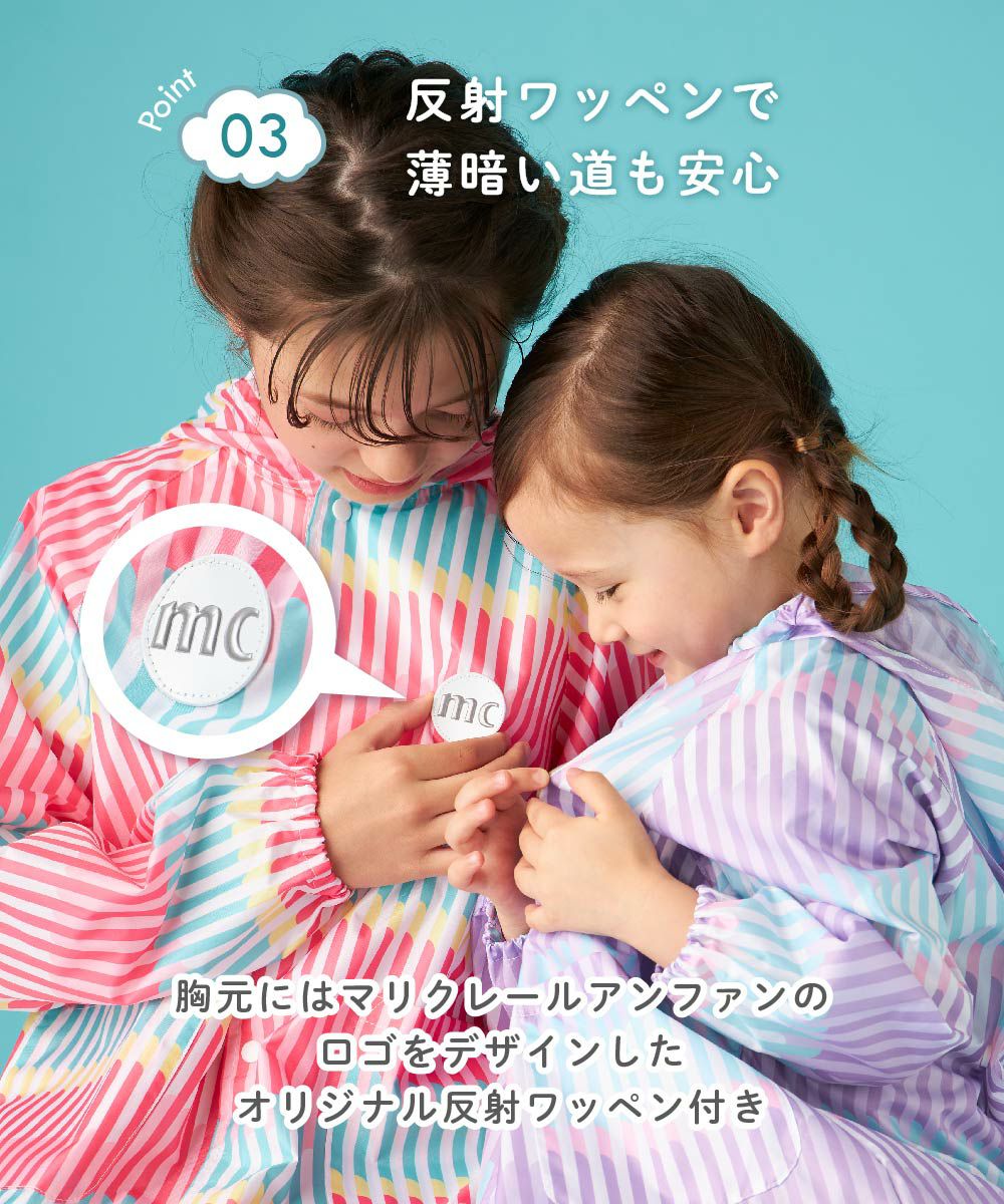 オリジナルのストライプ柄がかわいいランドセル対応レインコートです。