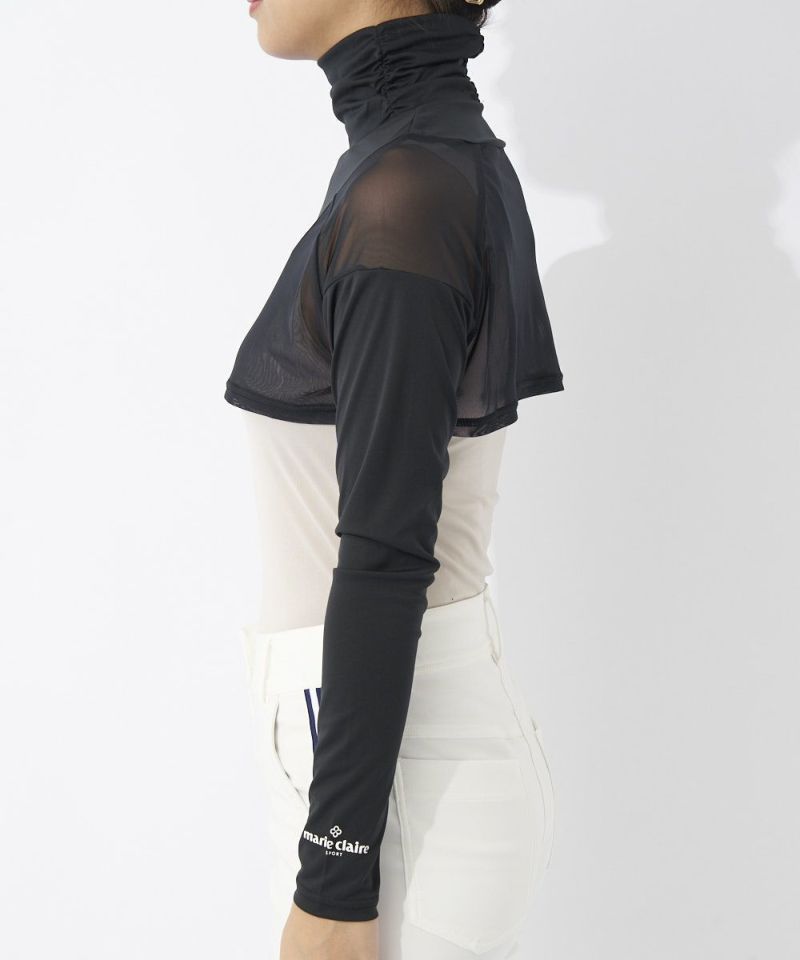ハイネックデザインが首元をすっきり見せ、日差し対策にも◎。