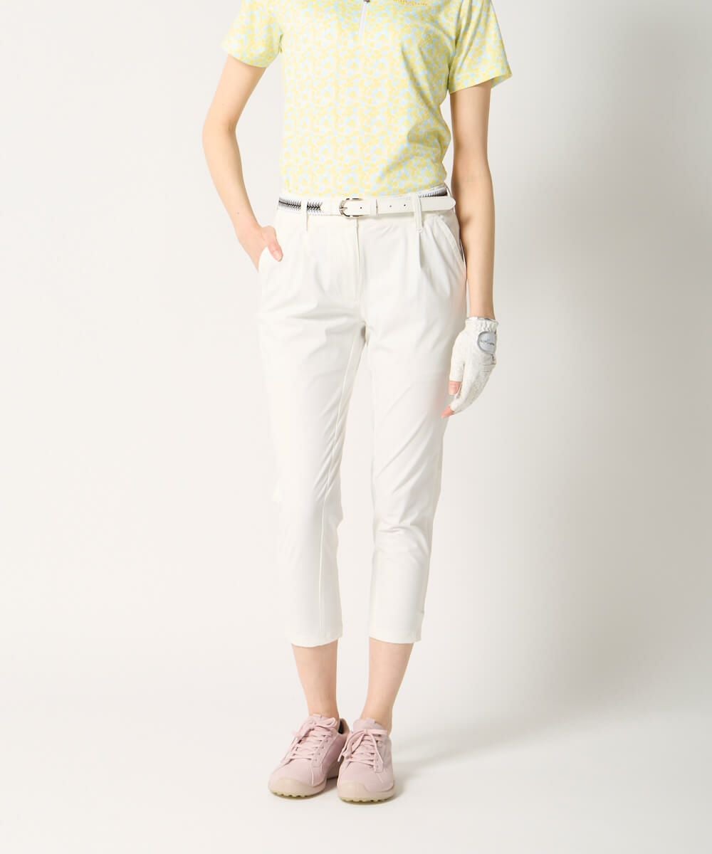 足首が見えるデザインなので、お気に入りのゴルフシューズやソックスとのコーディネートが楽しめます。撥水・ストレッチ・軽量と、アクティブなシーンに必要な要素が凝縮された、プロ仕様の機能美パンツです。