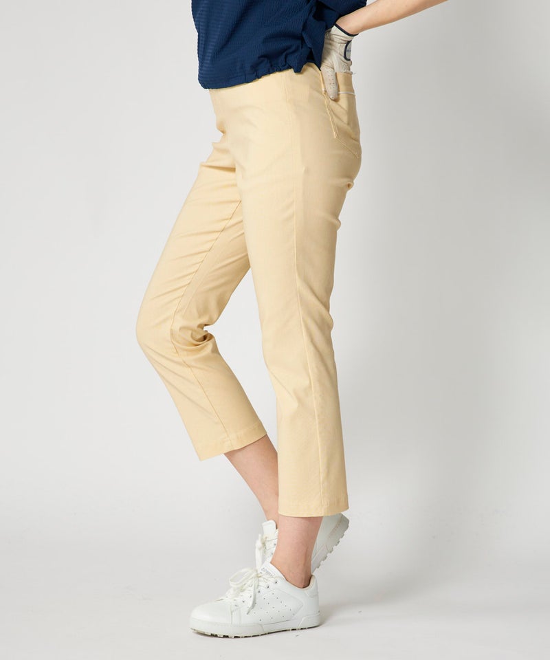 爽やかな素材感は、夏のポロシャツやチュニックとの相性が抜群です。高い機能性を持ちながら、クラシックで上品なデザインなので、ゴルフ場への行き帰りやカジュアルなタウンユースにも最適。パフォーマンスを妥協せず、スタイルアップも叶えたい大人の女性に贈る一着です。