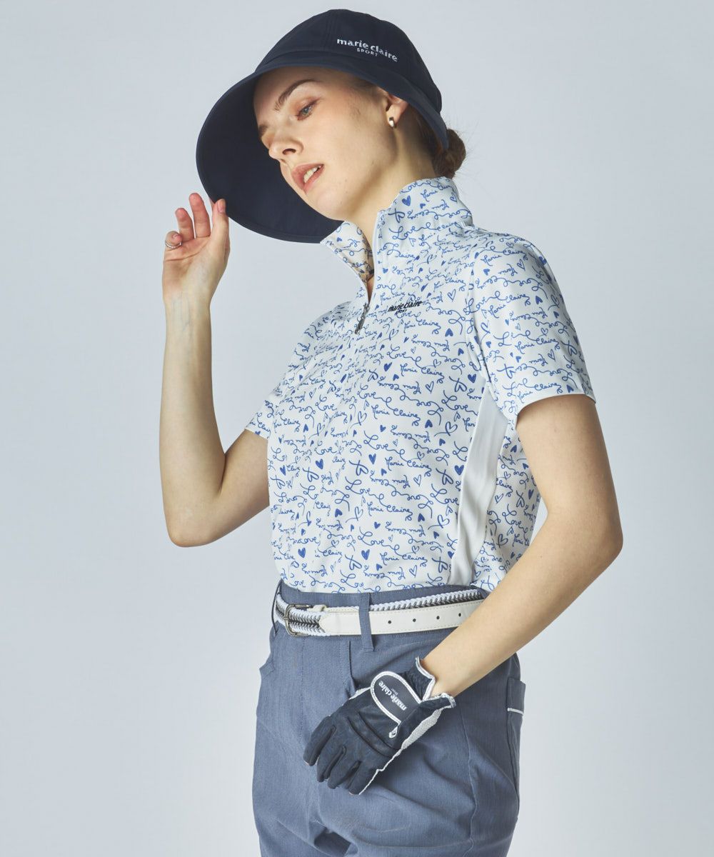 ハートデザイン柄ハーフジップ半袖シャツ