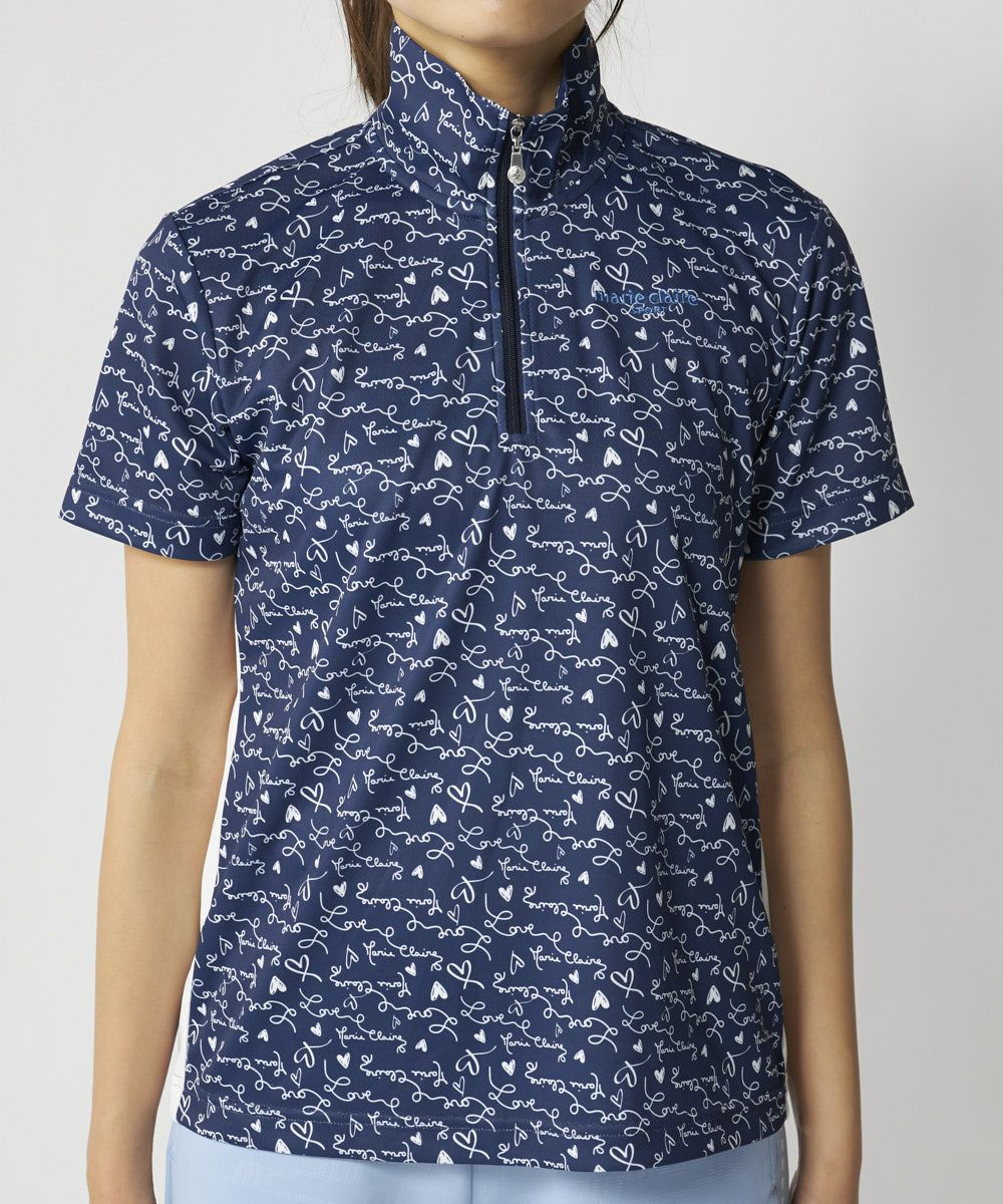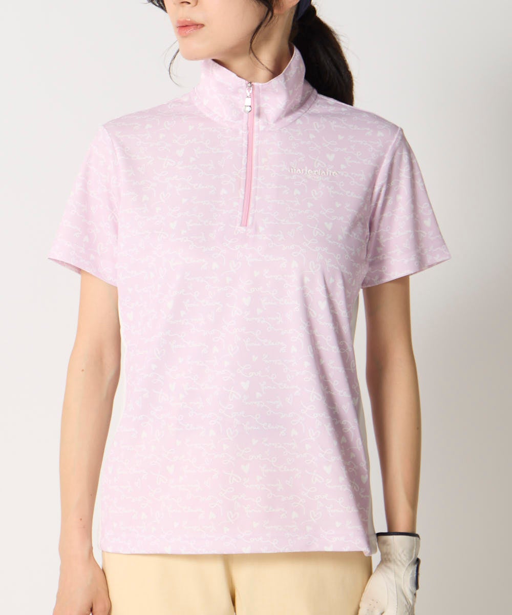 ハートデザイン柄ハーフジップ半袖シャツ