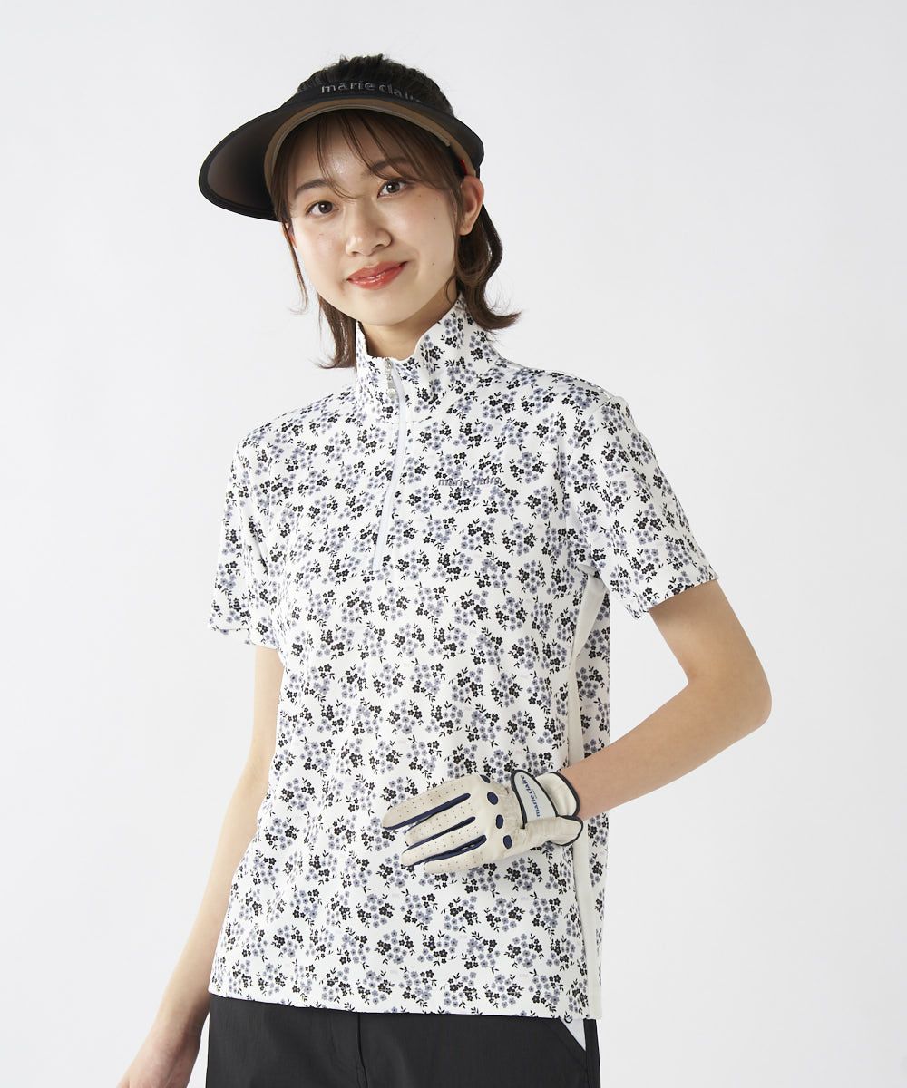 ハートデザイン柄ハーフジップ半袖シャツ