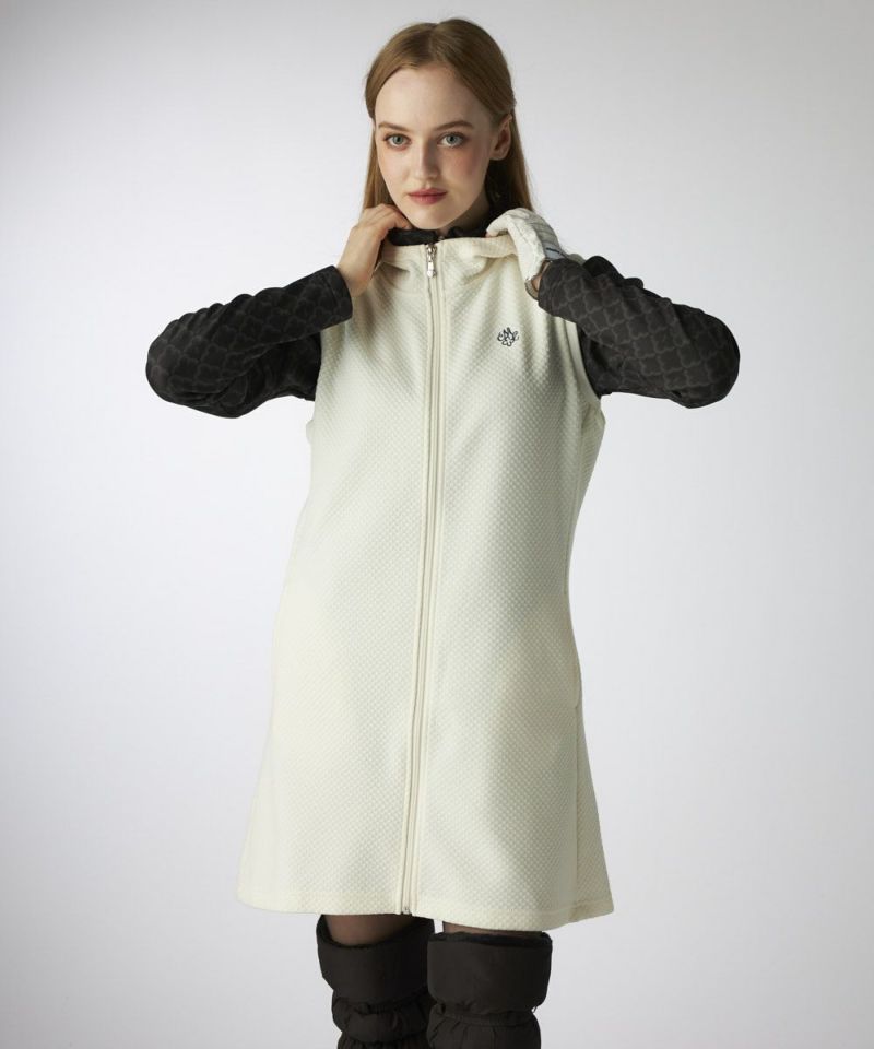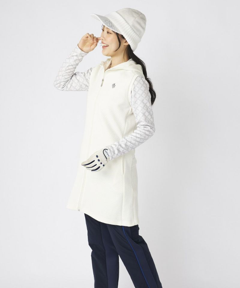 羽織るだけで女性らしいシルエット。防寒も叶うロングベスト。 キルトワンピースベスト