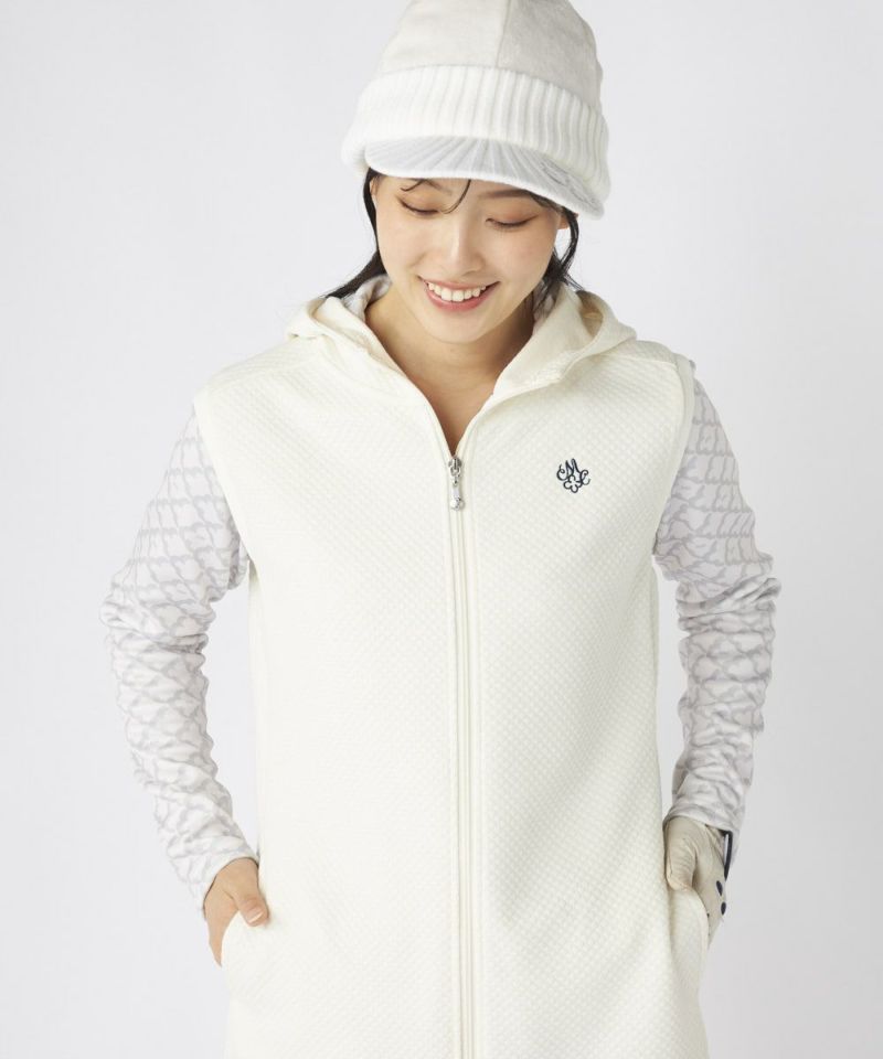 モックネックシャツやタートルネックとのレイヤードで、上品な冬ゴルフスタイルに。