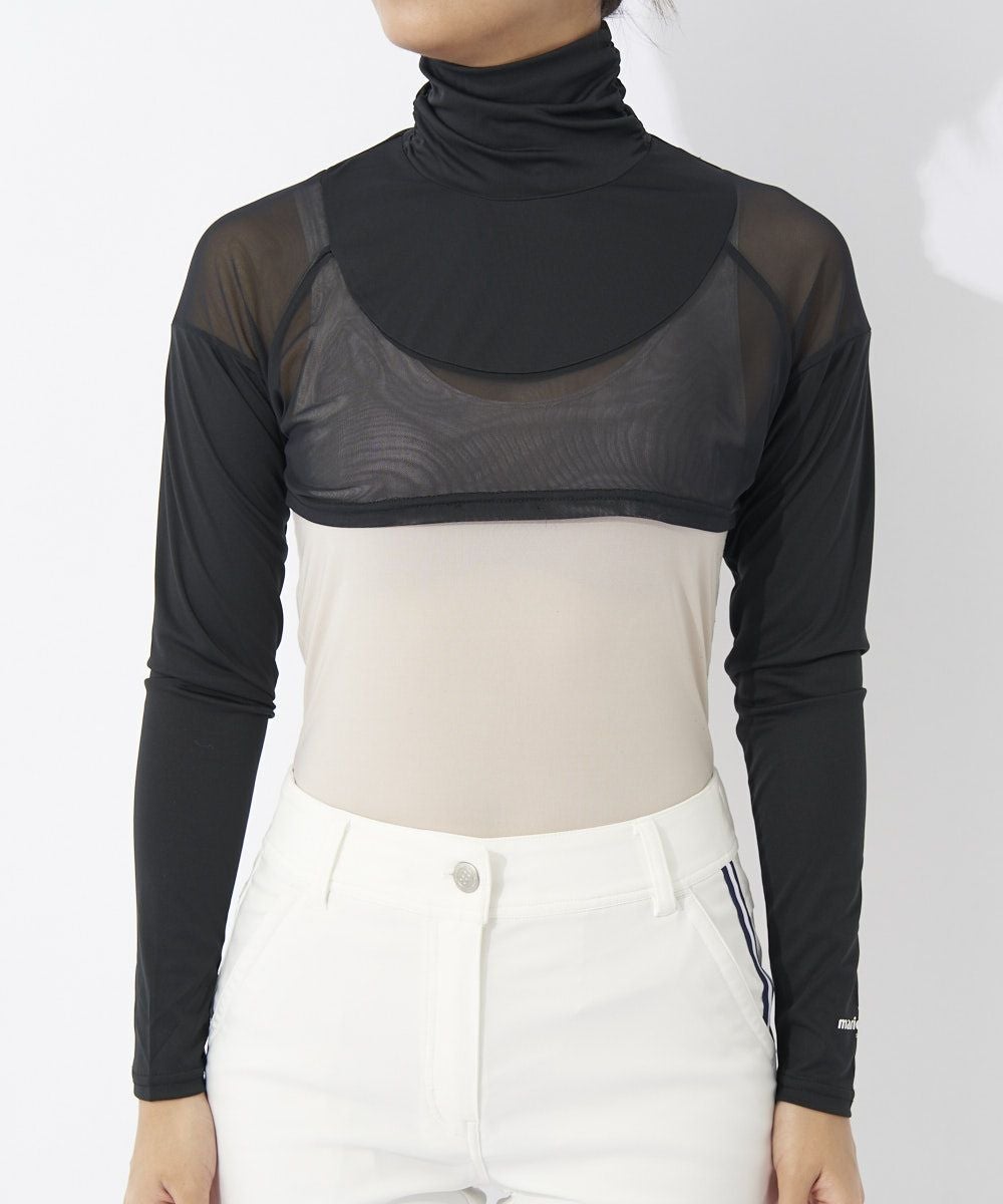 ハイネックデザインが首元をすっきり見せ、日差し対策にも◎。