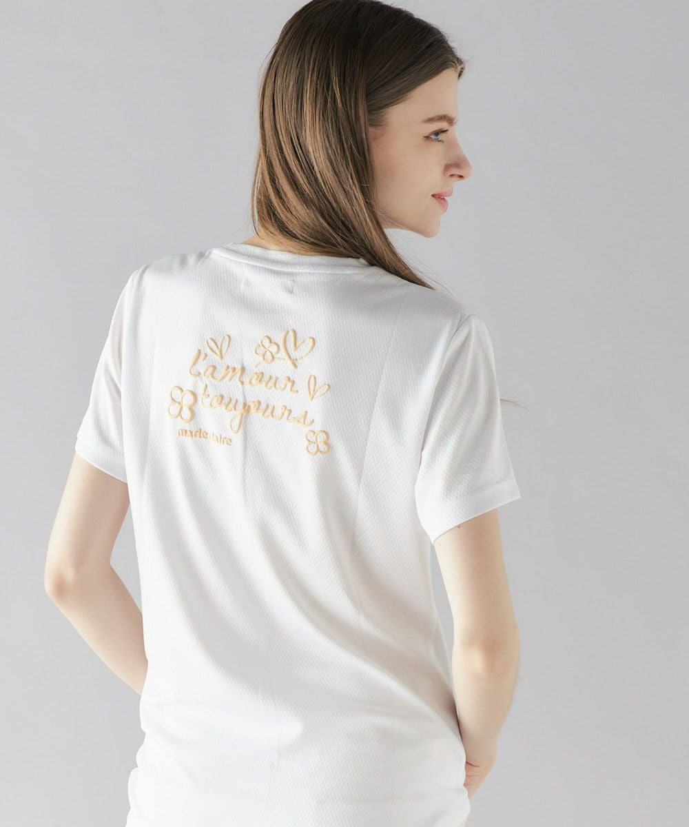 ゆったりめのシルエットが着やすいTシャツはパリから届いた大人可愛いハートとお花のバックプリントがポイント。 発泡プリントなので凹凸がありカジュアルに大人可愛くコーディネートに大活躍してくれます。 織るとコーディネートのポイントになること間違いなし。