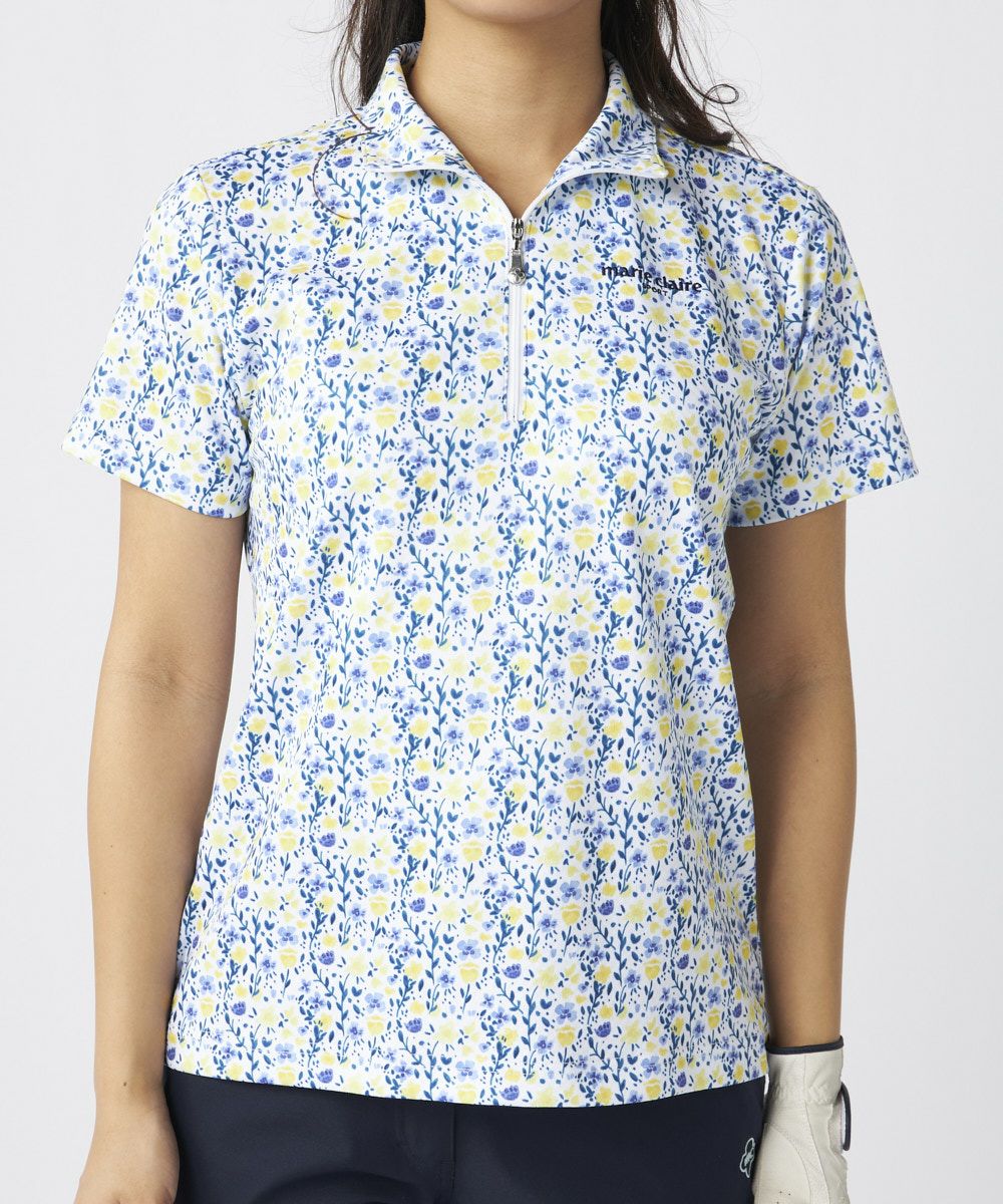 半袖ハーフジップ花柄シャツ | 吸汗速乾・UVカット・吸湿涼感・接触冷感