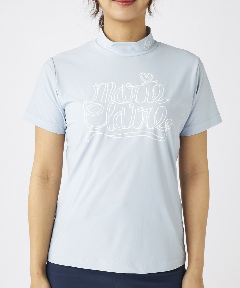 【スーパーナイロンクール】ロゴ半袖モックネックシャツ| 吸汗速乾・UVカット・接触冷感