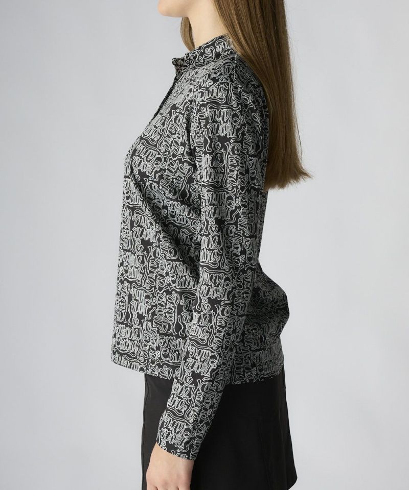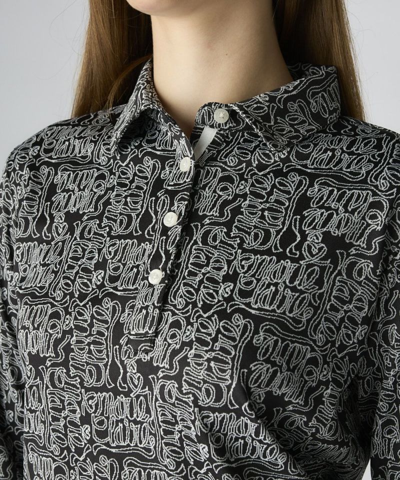さりげないリボンロゴ柄が大人の女性らしさを引き立てる上品な長袖シャツ。