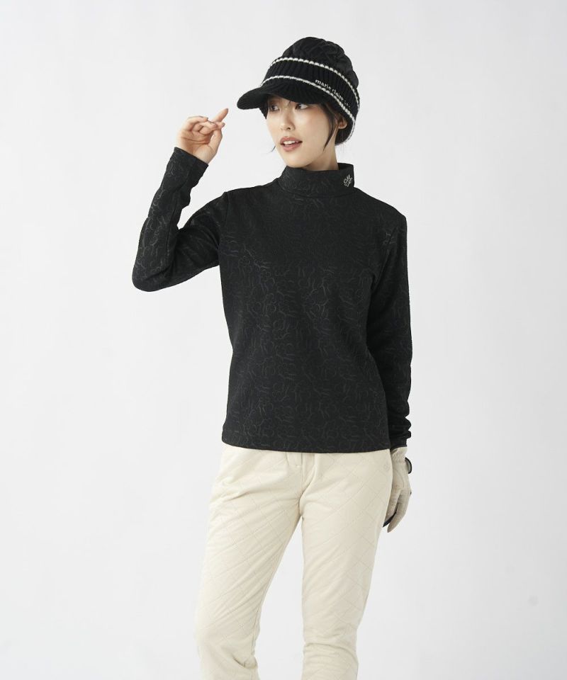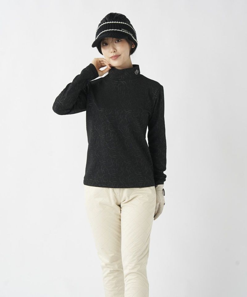 ふくれジャガード長袖モックネックシャツ