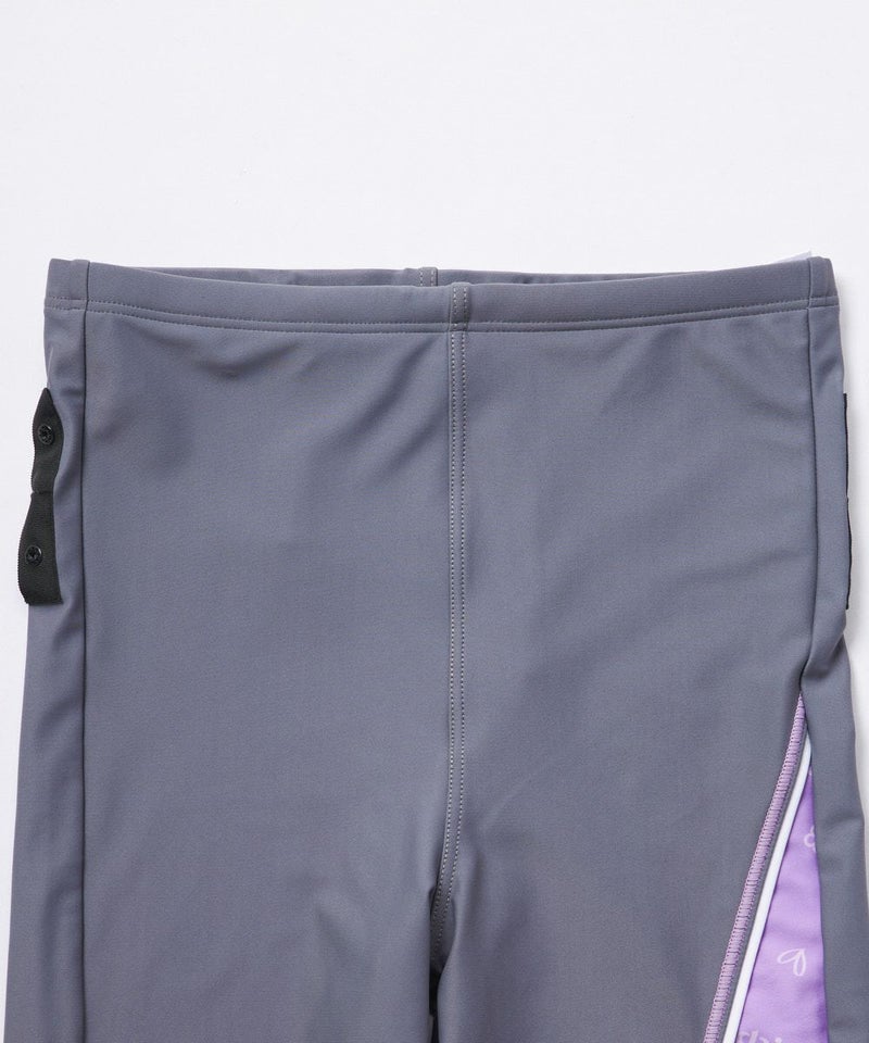ボトムは4分丈のスパッツスタイル。前身頃には伸縮性のある裏地を使用し、安心感のあるはき心地に。サイドに施した切替えパネルとロゴプリントが、縦ラインを強調して脚をすっきり見せてくれます。ウエストはスピンドル仕様でフィット感の調整も可能。裾にはめくれ防止機能を備え、動いてもズレにくく快適です。