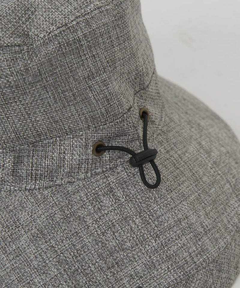 長めのつばが顔まわりをしっかりカバーし、エレガントな印象もプラス。