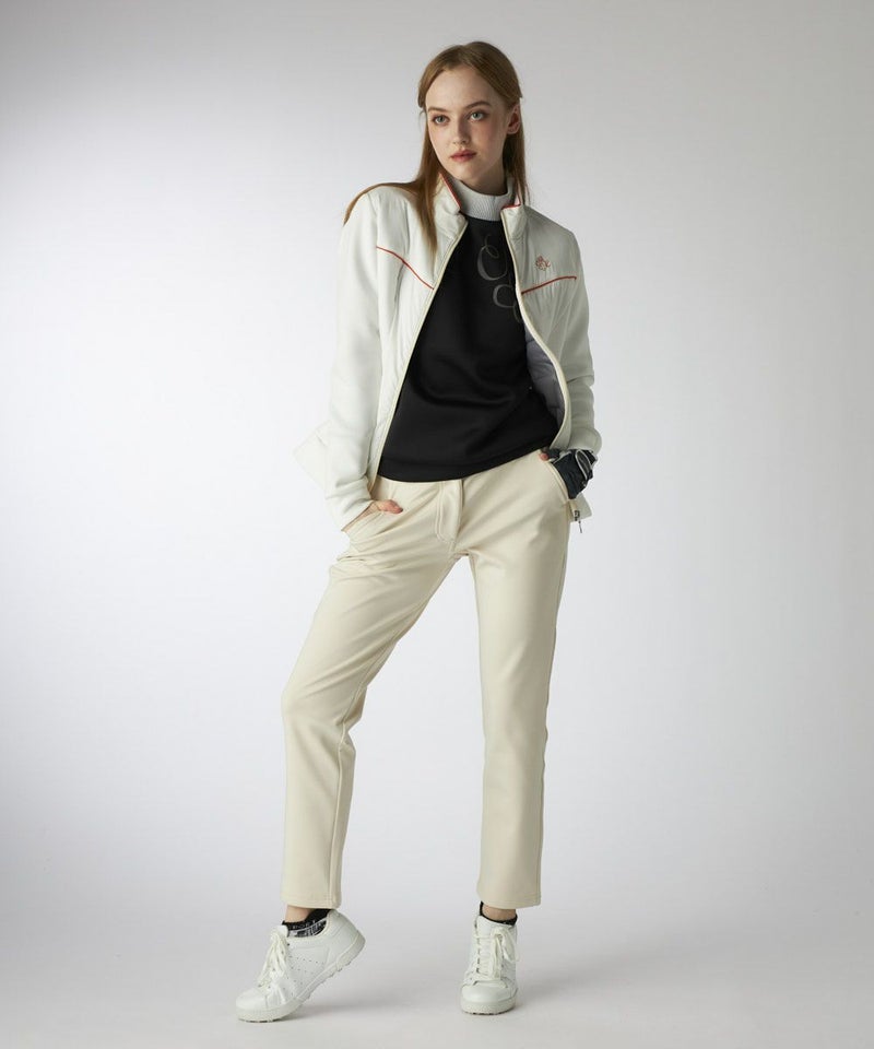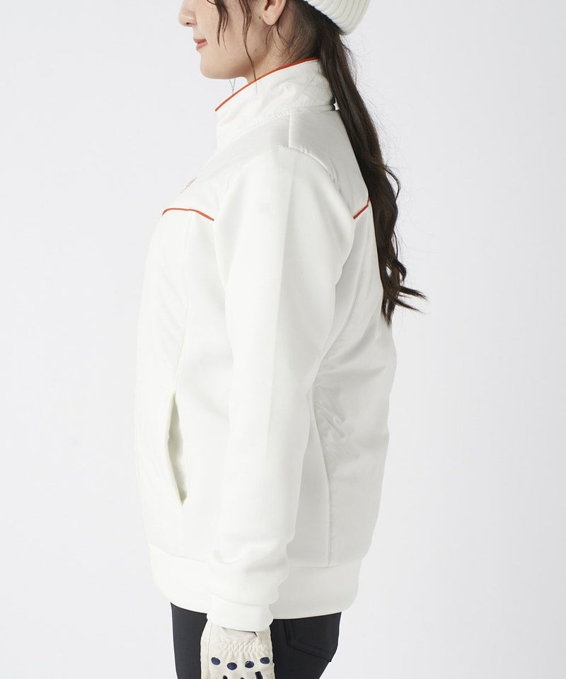 胸元のブランドロゴと、バイカラーであしらわれたラインが洗練されたアクセントに。