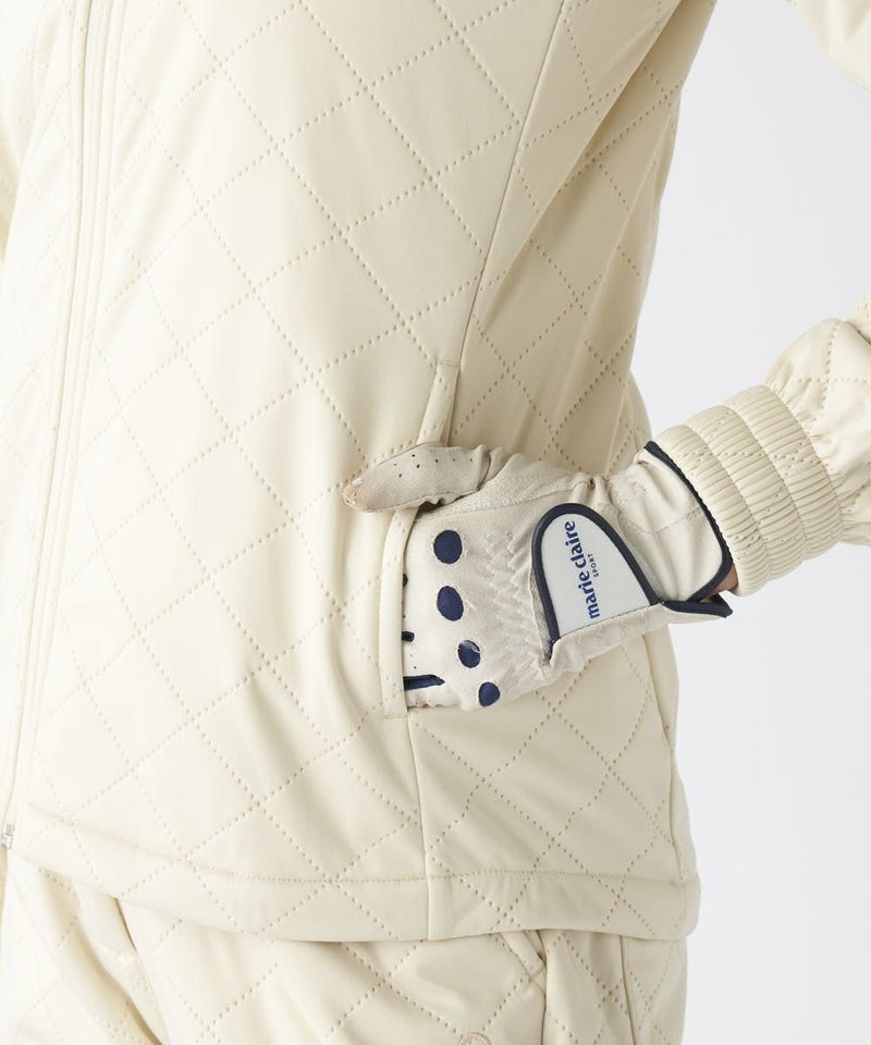 ダイヤ柄のキルトステッチが光を柔らかく反射し、立体的で上質な印象に。