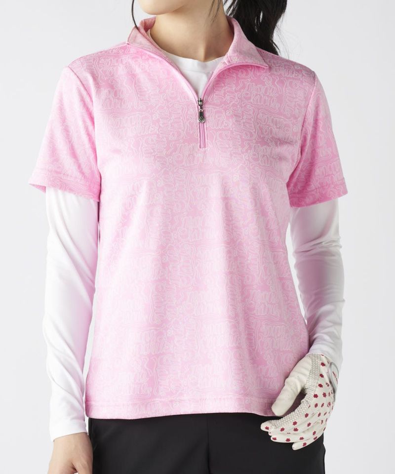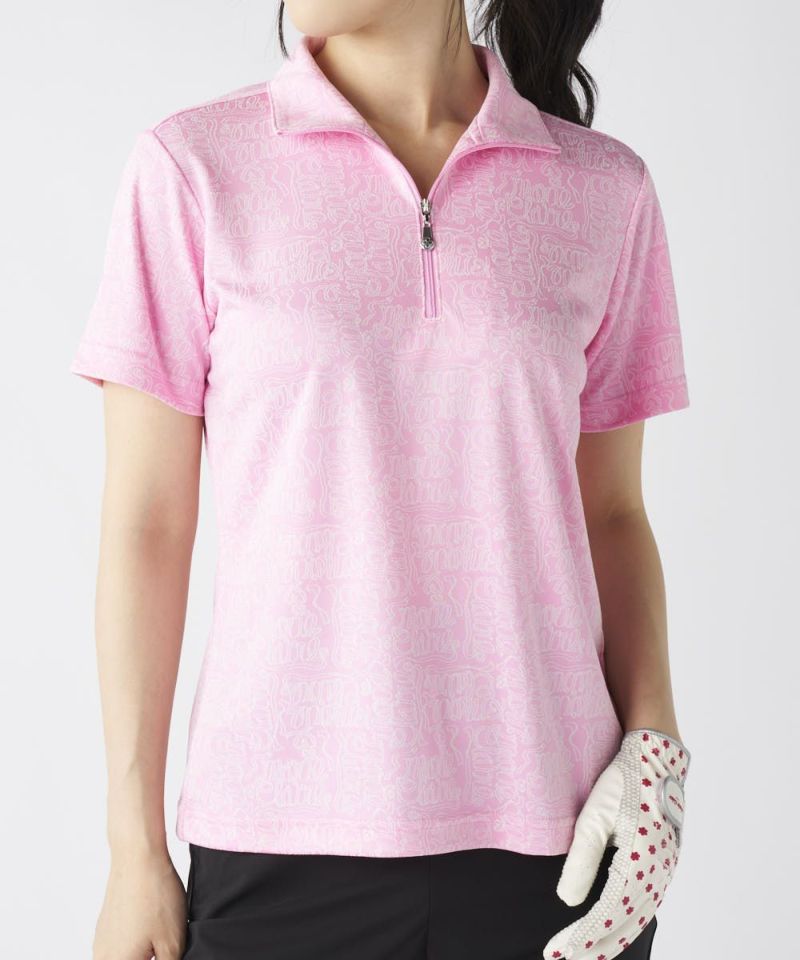 リボンロゴ半袖ジップシャツ