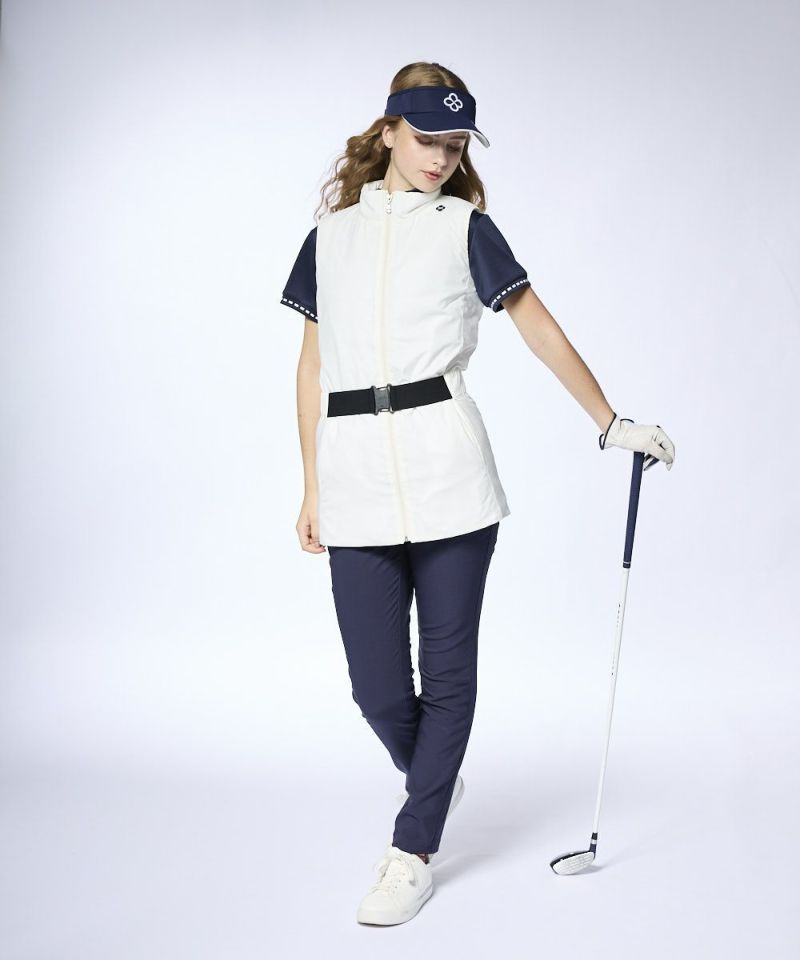 軽くしなやかなポリエステル素材を使用。表地には4方向へ伸びるストレッチ性を備え、スイングや屈伸などの動きにもスムーズに追従します。薄手の中綿がほどよい温かさを保ちながら、ごわつきのない快適な着心地を実現。裏地は滑りがよく、重ね着してももたつきにくいのが特徴です。