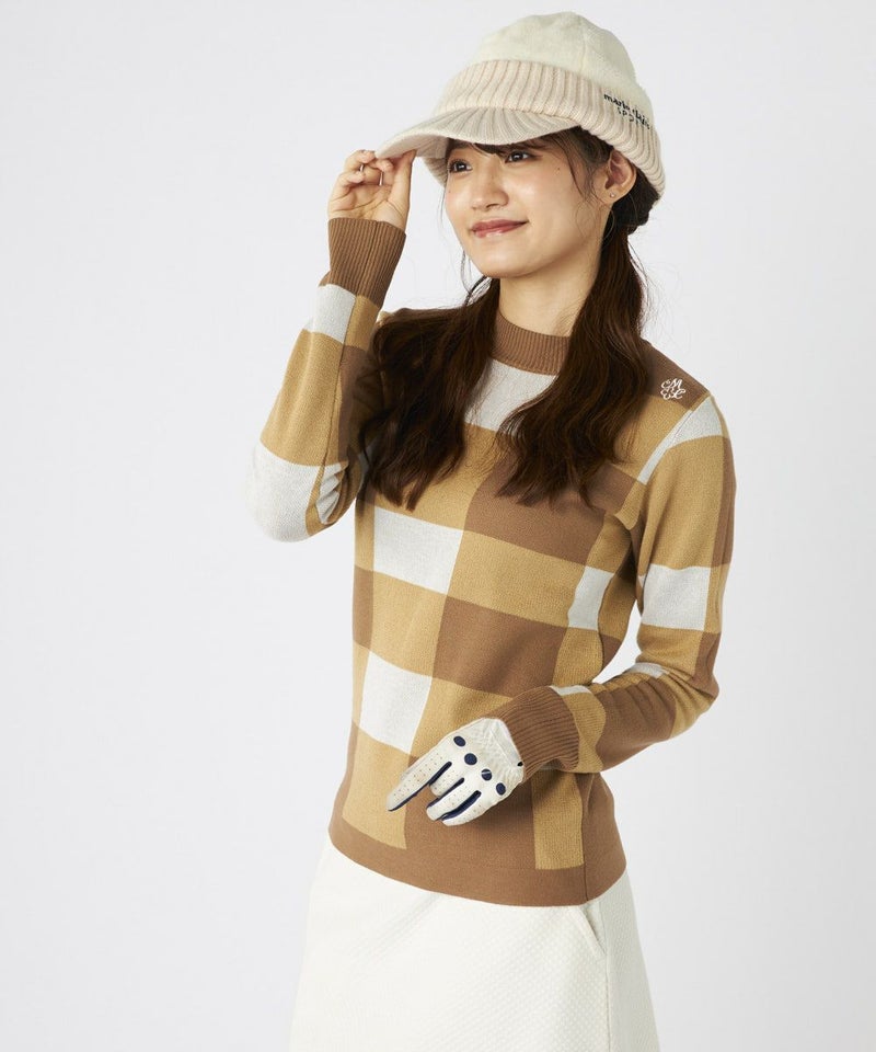チェック柄モックネックセーター