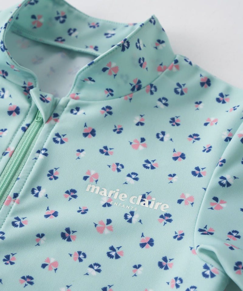 紫外線や擦り傷防止アイテムとしてラッシュガード欠かせないですよね!前あきファスナーで着脱しやすく、襟元はファスナーガード付きで安心です。水着と同柄なのでコーディネイトも可能です。