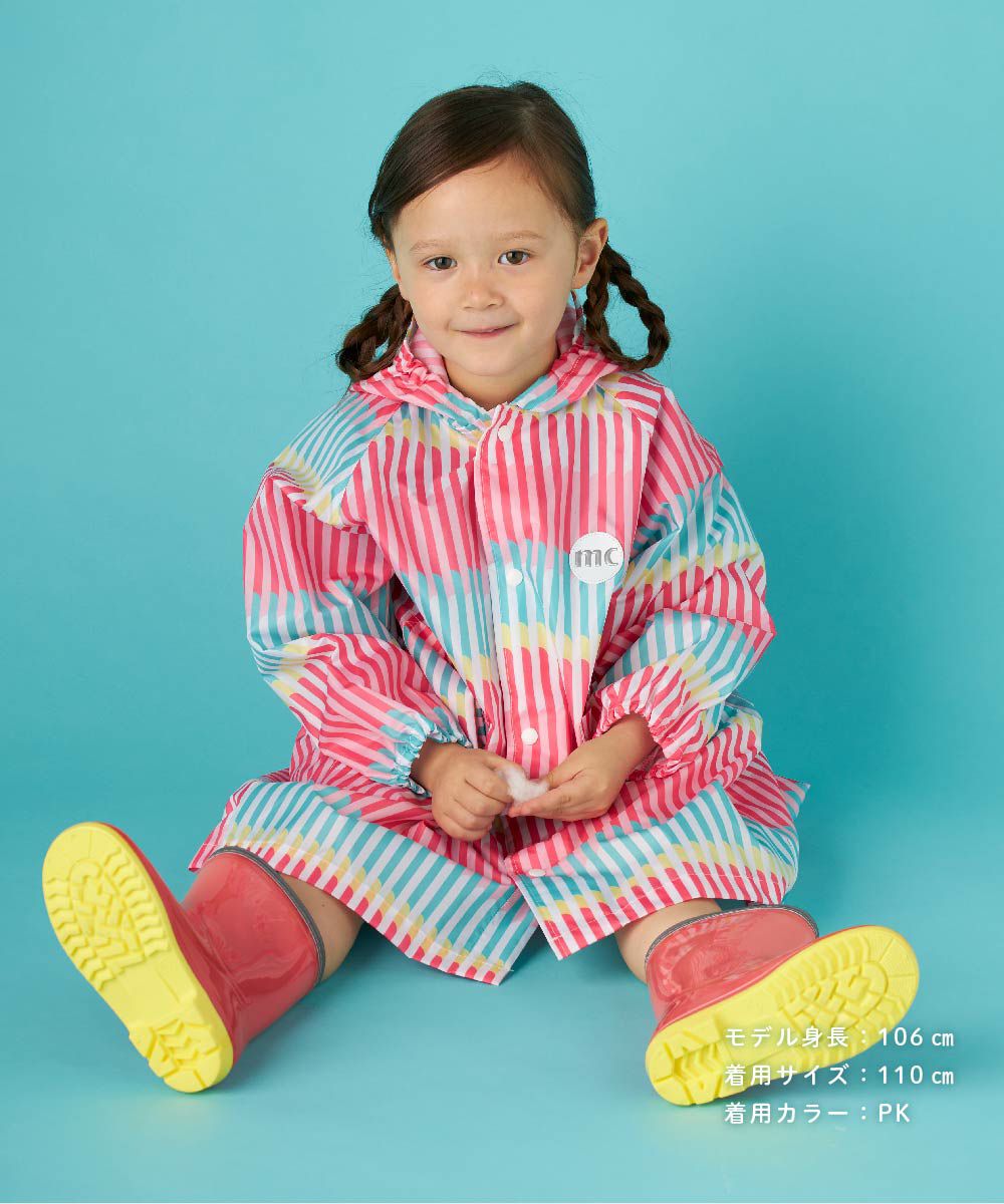 オリジナルのストライプ柄がかわいいランドセル対応レインコートです。