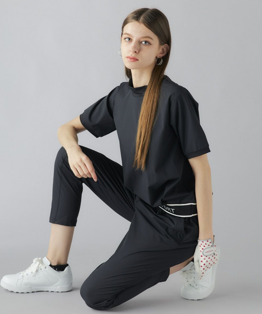同素材のトップスと合わせたセットアップコーディネートがおすすめです。上下合わせるだけで、こなれたおしゃれゴルフコーデが完成します!