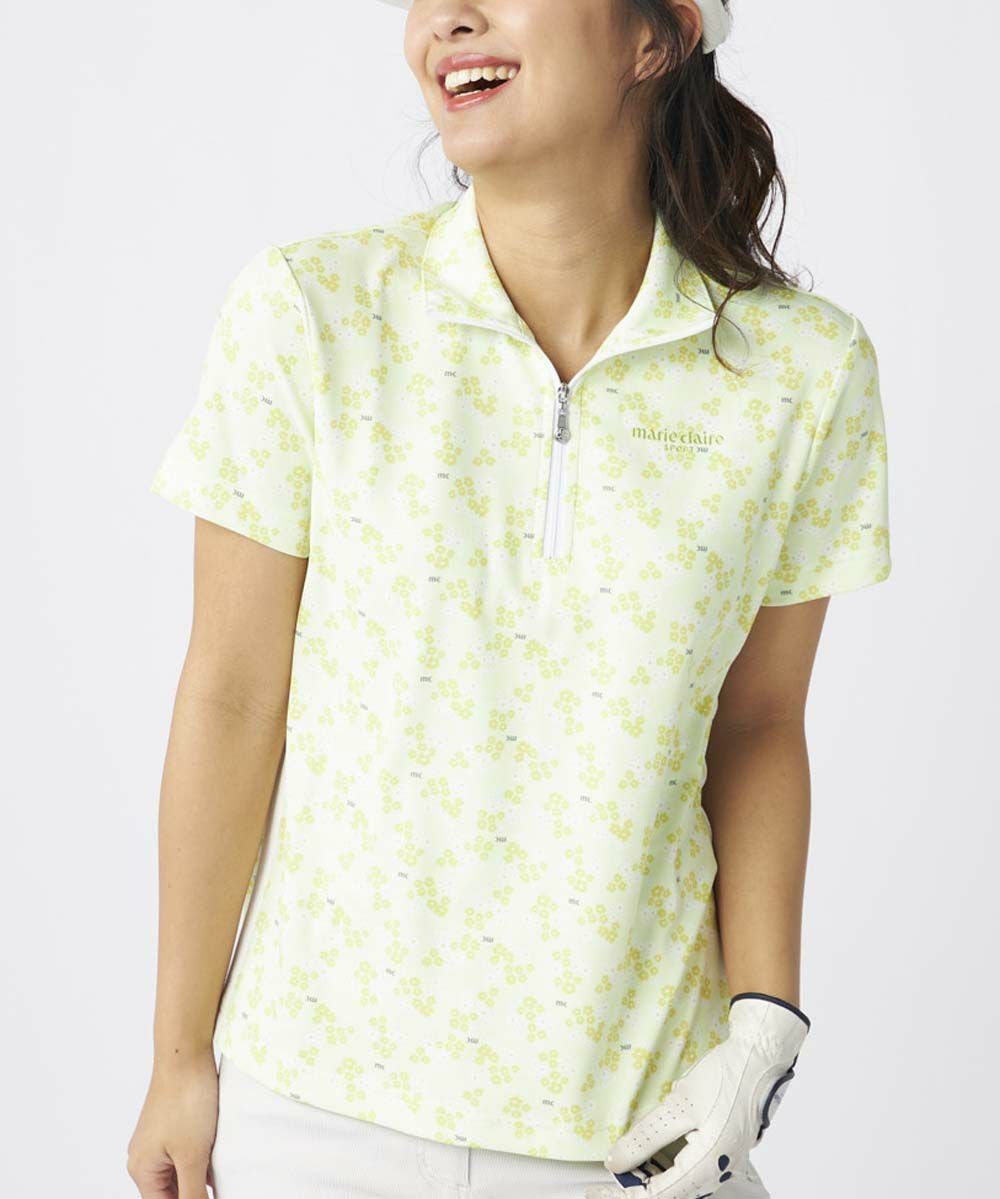 デザインはさりげない小花柄が上品なハーフジップシャツです。無地のパンツやスカートとはもちろん、柄アイテムと合わせたコーディネートもおしゃれです!ハーフジップで、首もとまで隠れるので、ゴルフ中に気になる首周りの日焼け対策もばっちりできます。半分ぐらいあけて、ポロシャツの襟のようにしてもかわいいです。気分に合わせて着こなしを変えて楽しみましょう!