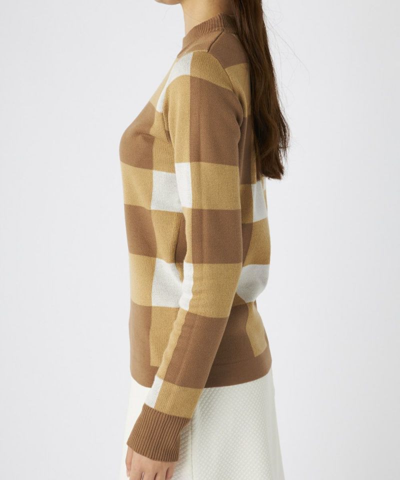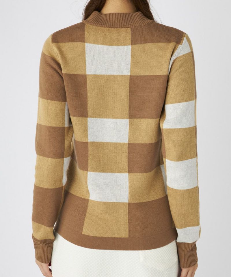 チェック柄モックネックセーター