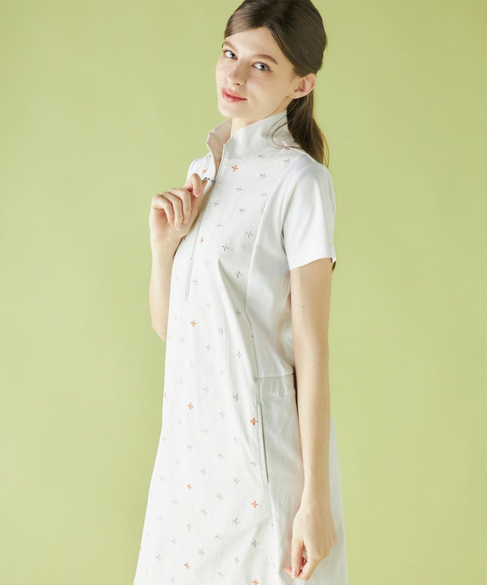 切替刺繍コードレーン素材ワンピース | 吸汗速乾・UVカット・ストレッチ