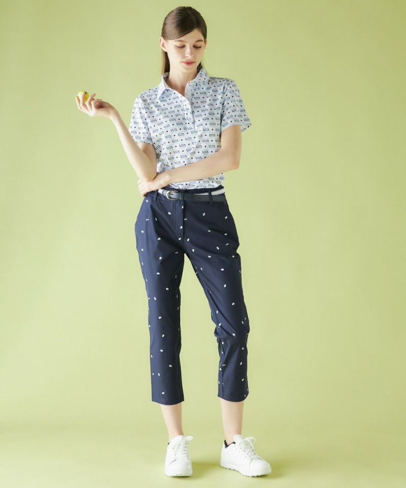 【NET限定 4L~6Lサイズ・美脚シルエット】9分丈柄パンツ|撥水加工・8WAYストレッチ