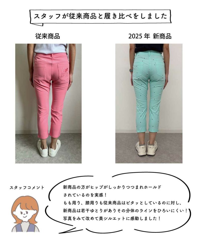 毎年色違いでご購入される方も多い、ゴルフ女子に大人気のロングパンツです。