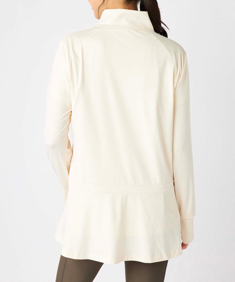 冷感素材でヒンヤリと羽織れる長袖ジャケット。高めの衿が付いているので首回りの紫外線対策もしっかり対策 。左袖のスポーティーな大き目ロゴもポイント。