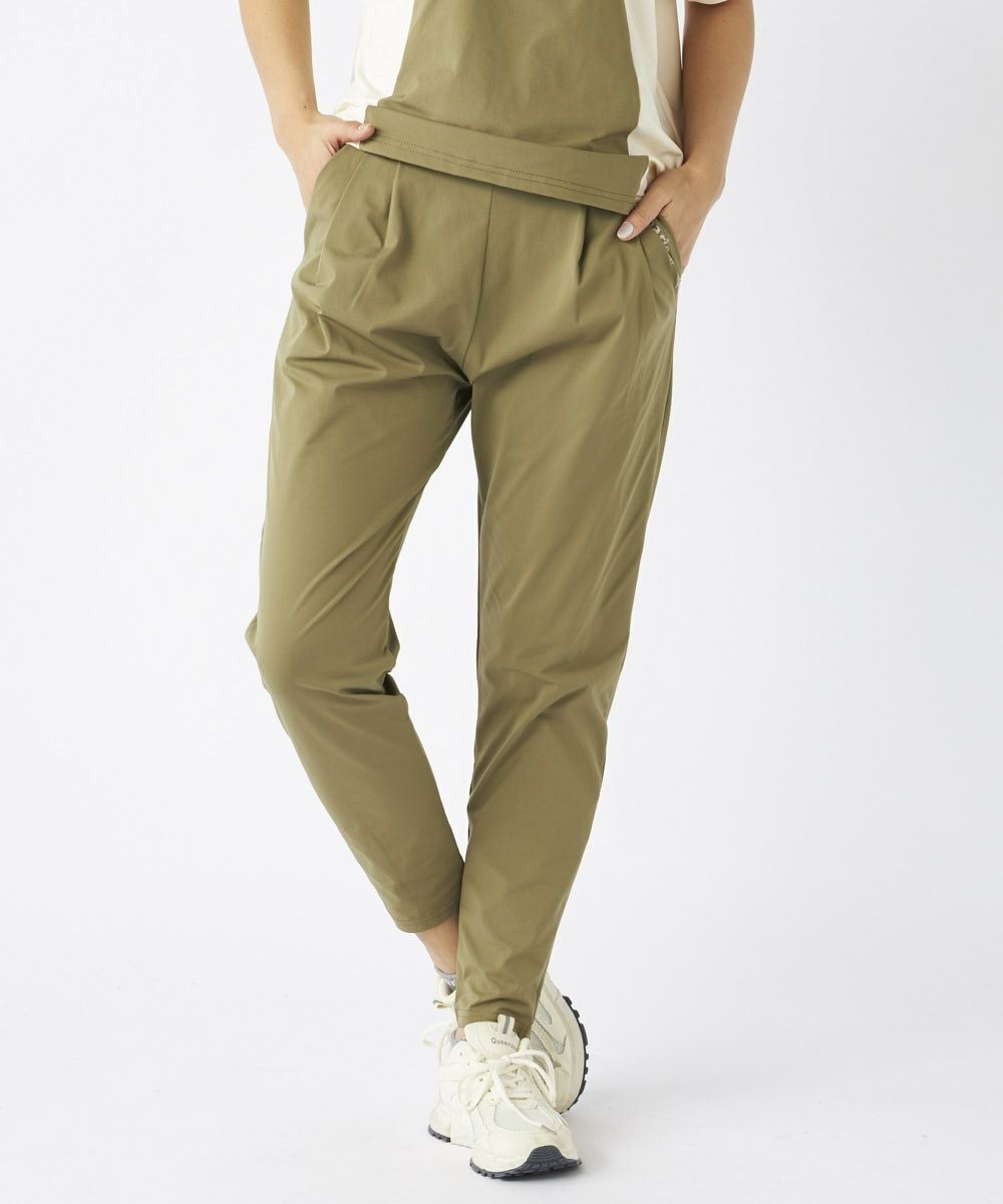 タックが入ったデザインで、足首のかけて補足すっきりと見えるデザインのロングパンツ。ウエスト周りはスッキリと見えるデザインに。同素材のTシャツと合わせたコーディネートもおすすめです。