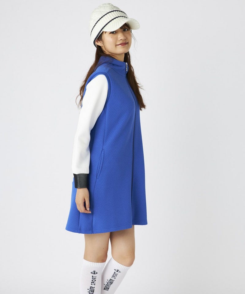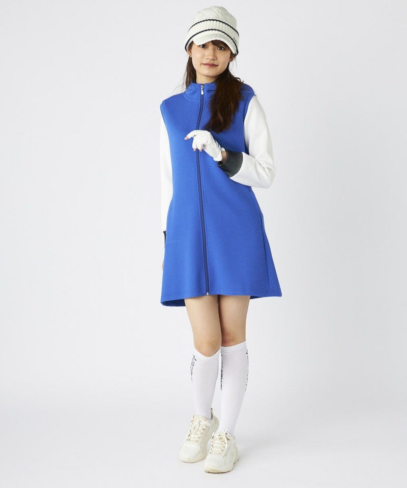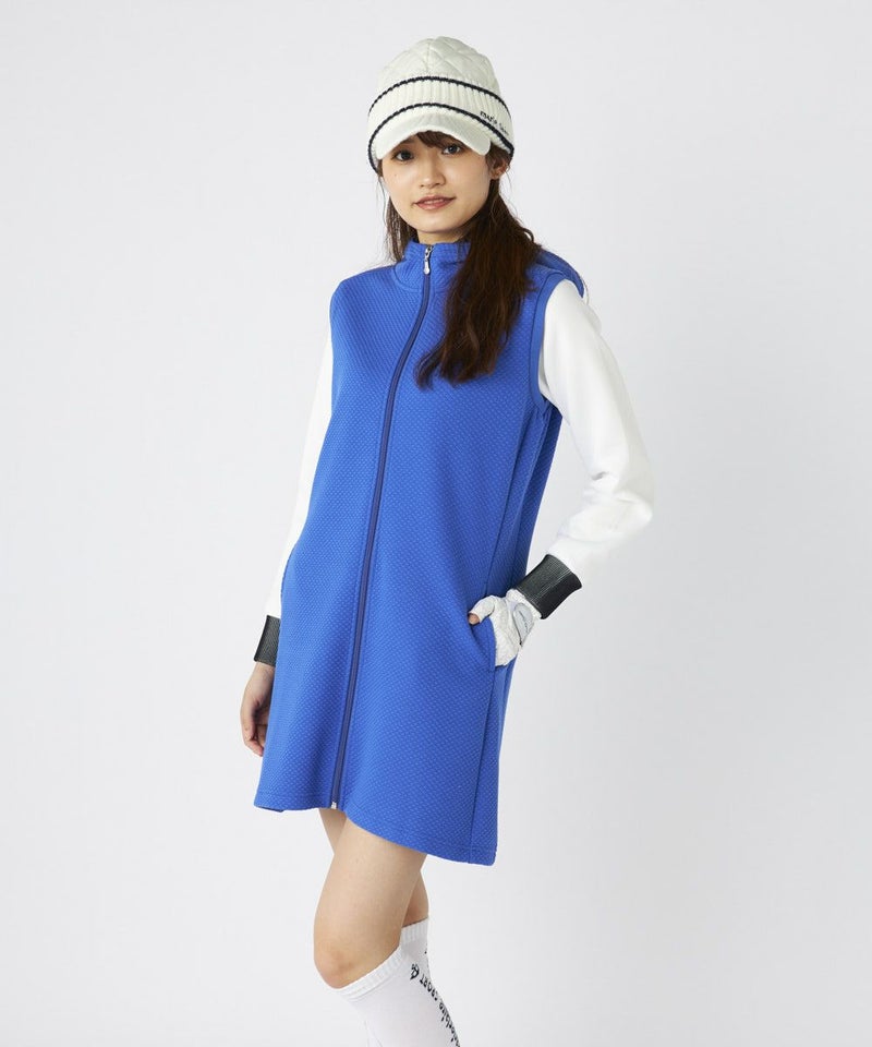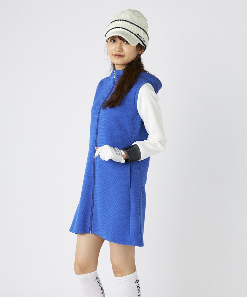 モックネックシャツやタートルネックとのレイヤードで、上品な冬ゴルフスタイルに。