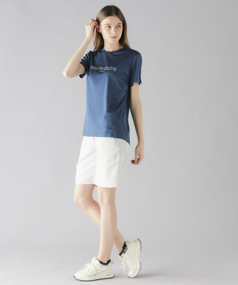 センターのロゴがかっこいいシンプルなTシャツ。さりげなくサイドの切り替えが内側に入っているので、すっきりと細見え効果も期待できます!接触冷感素材の機能付きなので、夏にむけて大活躍のTシャツです!