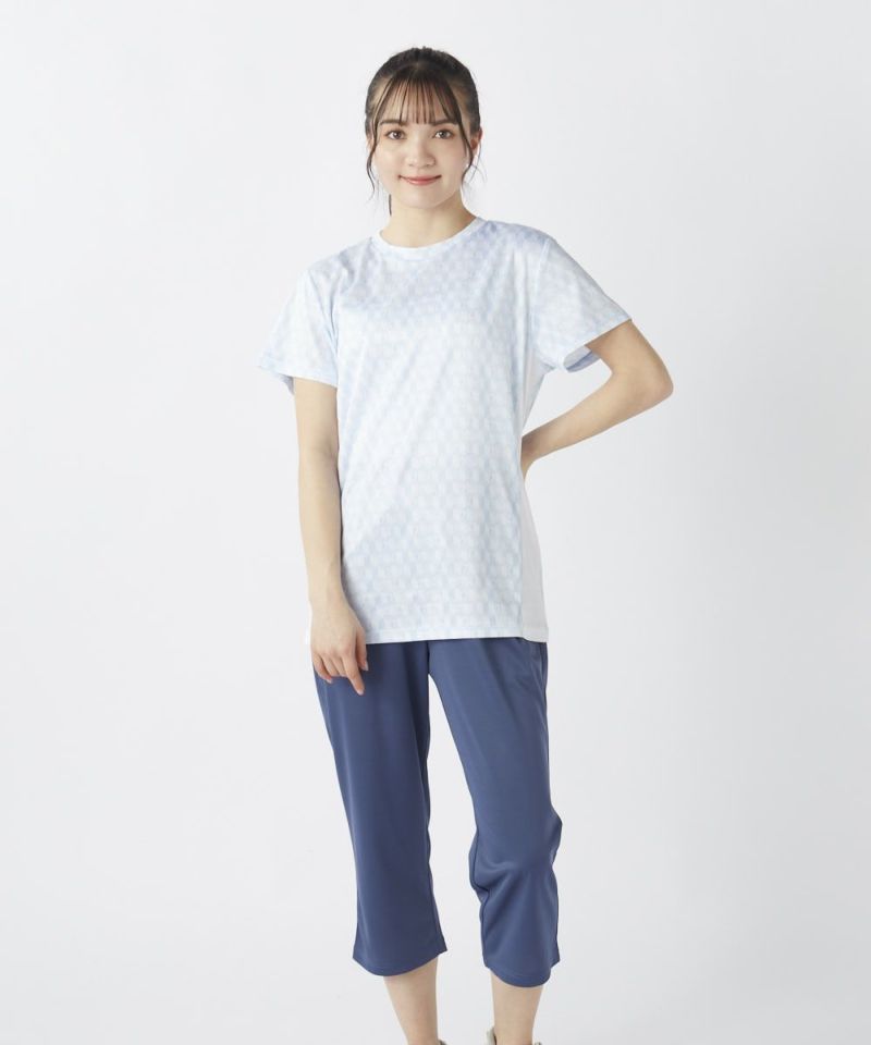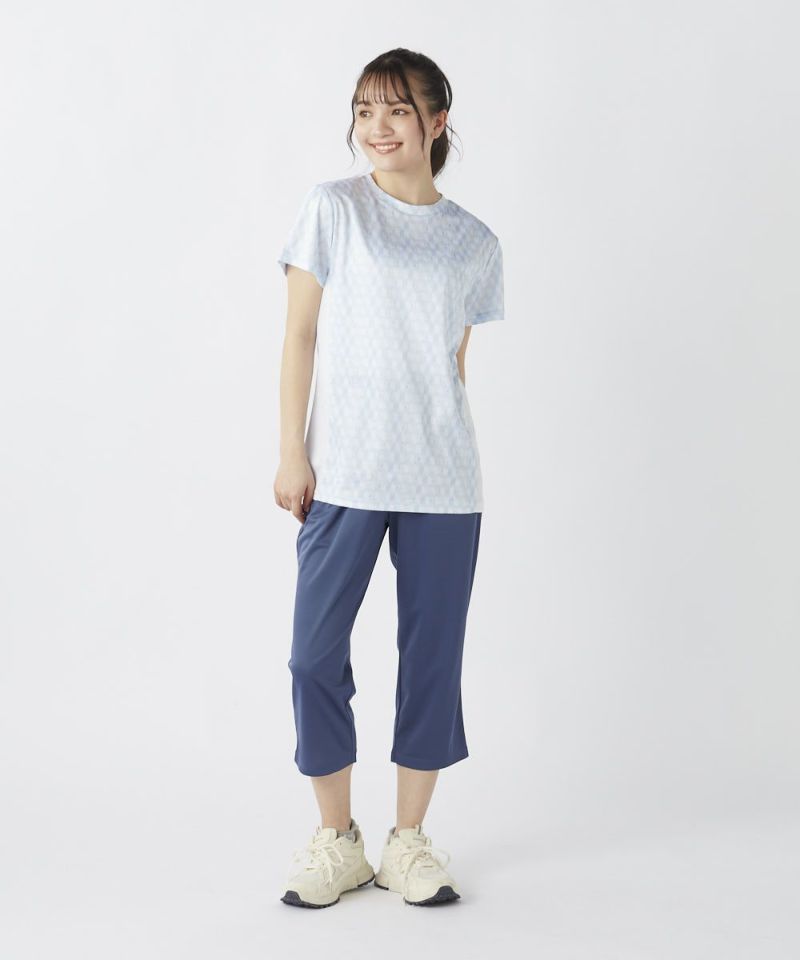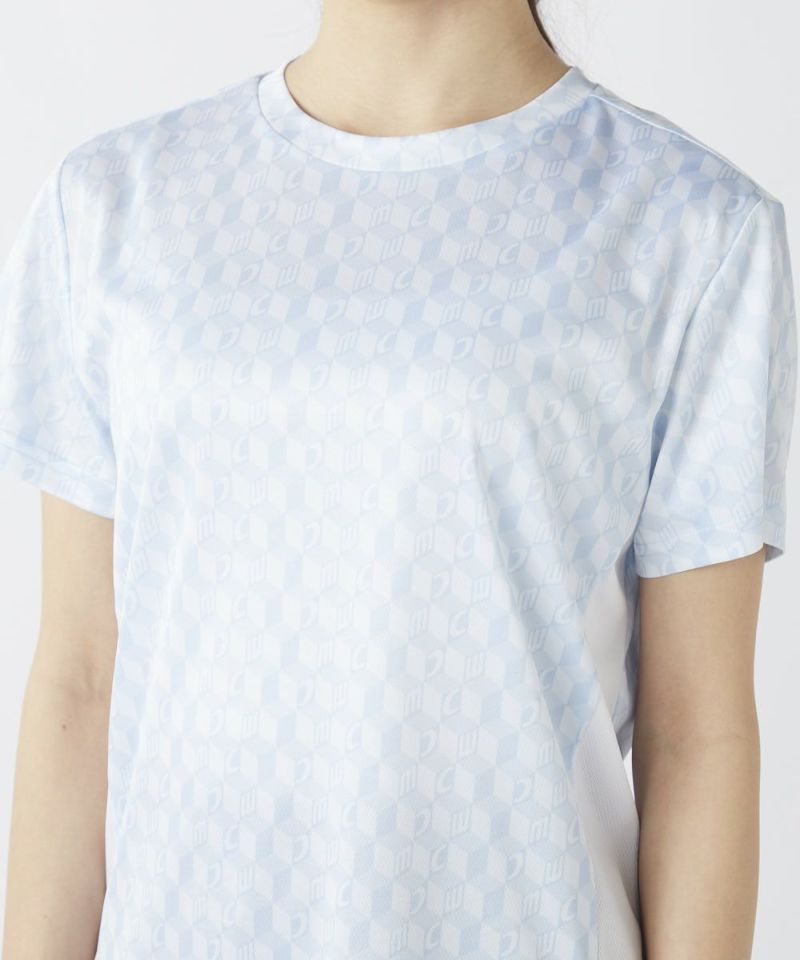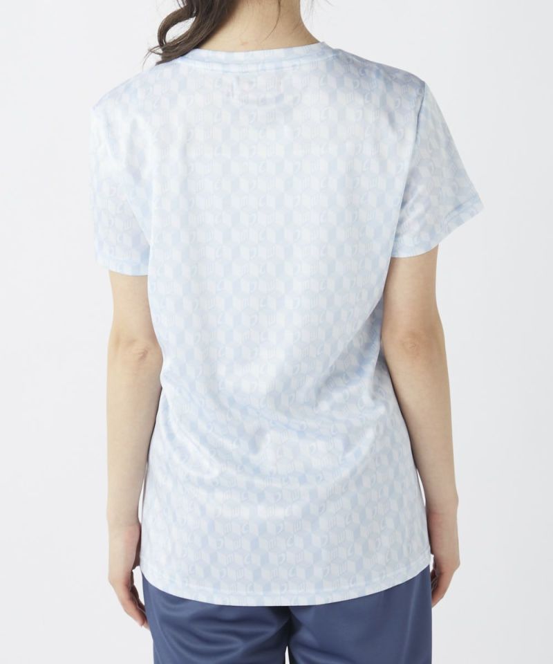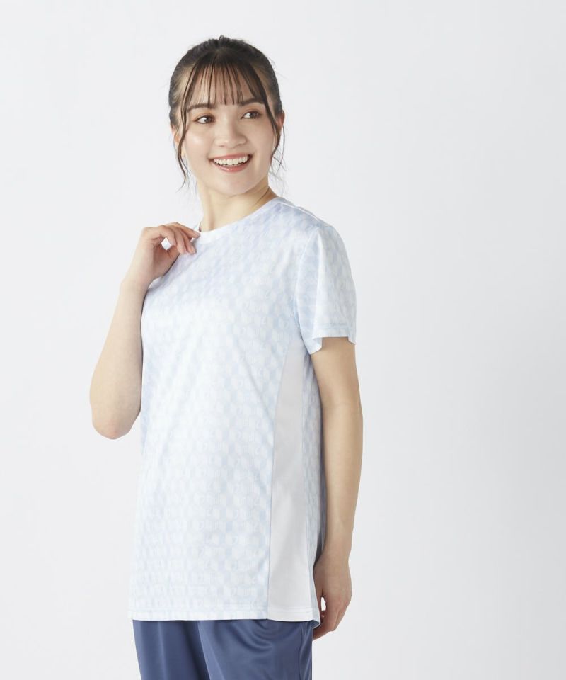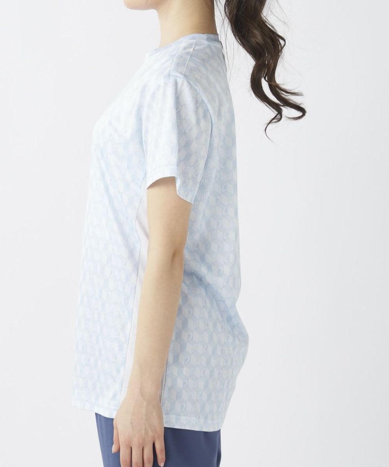ブロックデザインの総柄がおしゃれな半袖Tシャツ。