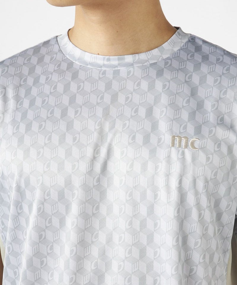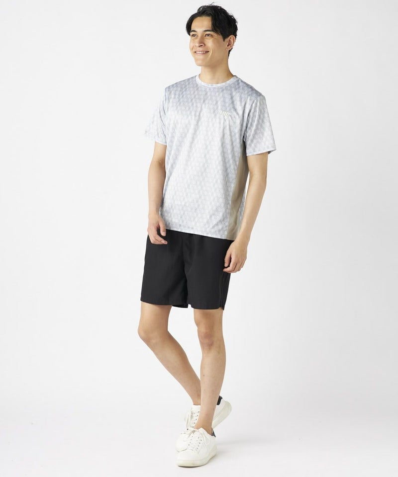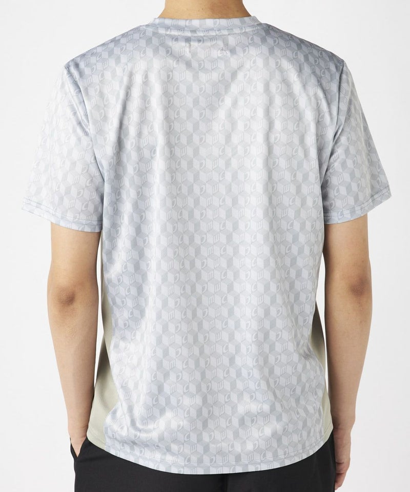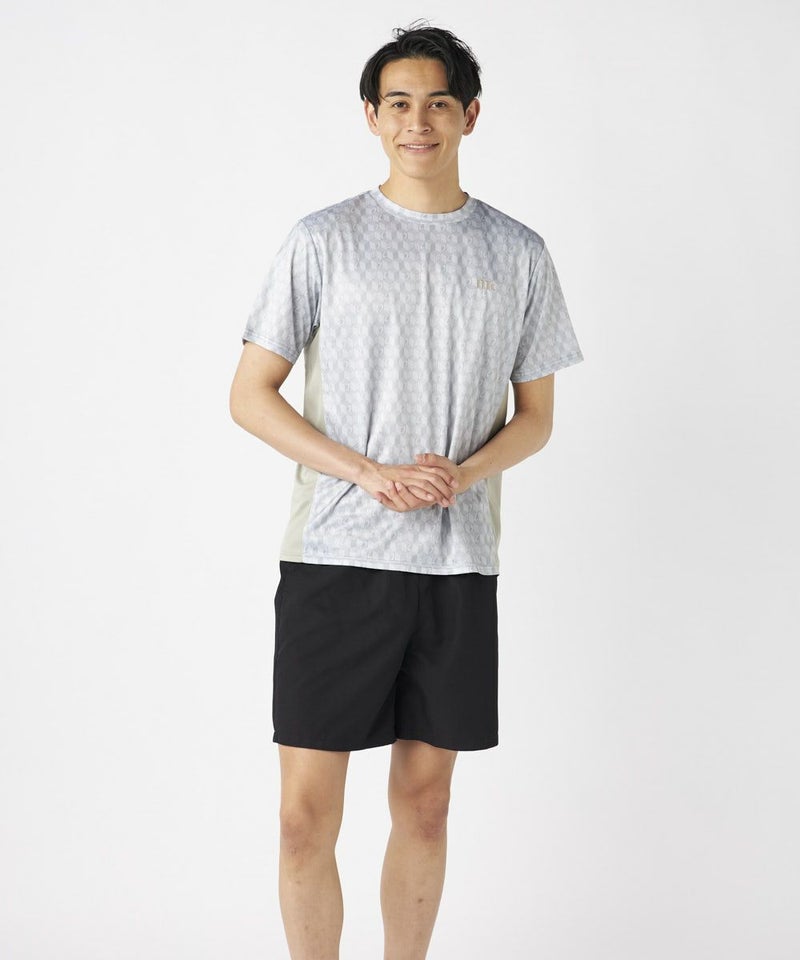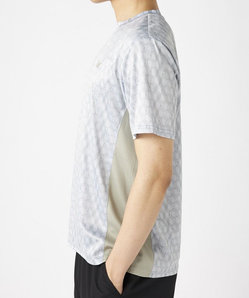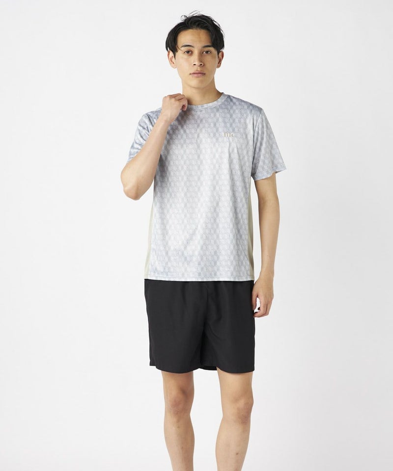 脇の切り替えがシルエットをすっきりと見せてくれる接触冷感生地のTシャツ。パリから届いたMCが散りばめ られた総柄がスポーティーながらもクールな印象の一枚で決まるアイテムです。