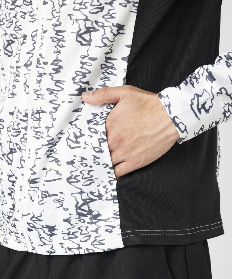 脇の切り替えがシルエットをすっきりと見せてくれる長袖のUVジャケット。衿も高めの設定なのでメンズも気 になる首元の紫外線をしっかり対策してくれます。パリから届いた他には無いオシャレな総柄がコーディネート の主役に間違いなしのアイテムです。