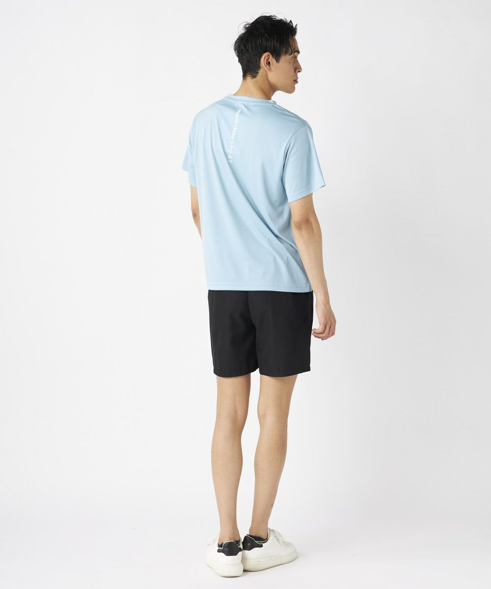 背中部分に縦にブランドロゴが入ったスタイリッシュなTシャツ。前身は無地なので使いやすくいろんな場面で 着て頂けます。