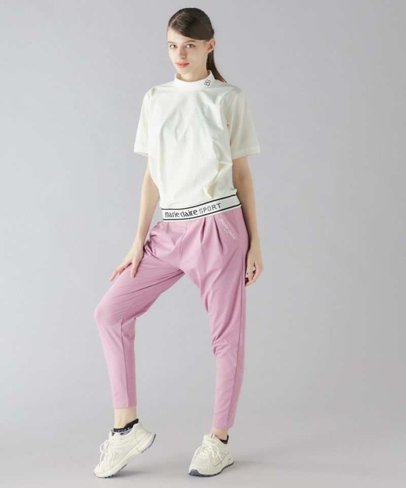 タックが入ったデザインで、足首のかけて補足すっきりと見えるデザインのロングパンツ。ウエスト周りはスッキリと見えるデザインに。同素材のTシャツと合わせたコーディネートもおすすめです。