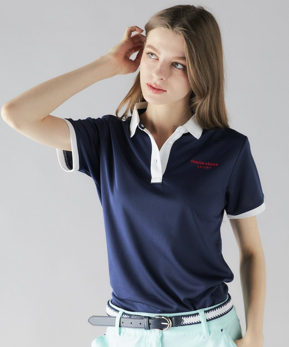メッシュ素材が涼しい、シンプルなポロシャツ、衿部分と袖部分がバイカラーのなっているデザインもポイントになります。ポロシャツなので、幅広いスポーツシーンに活躍!ゴルフにも普段にも使いやすいアイテムです!