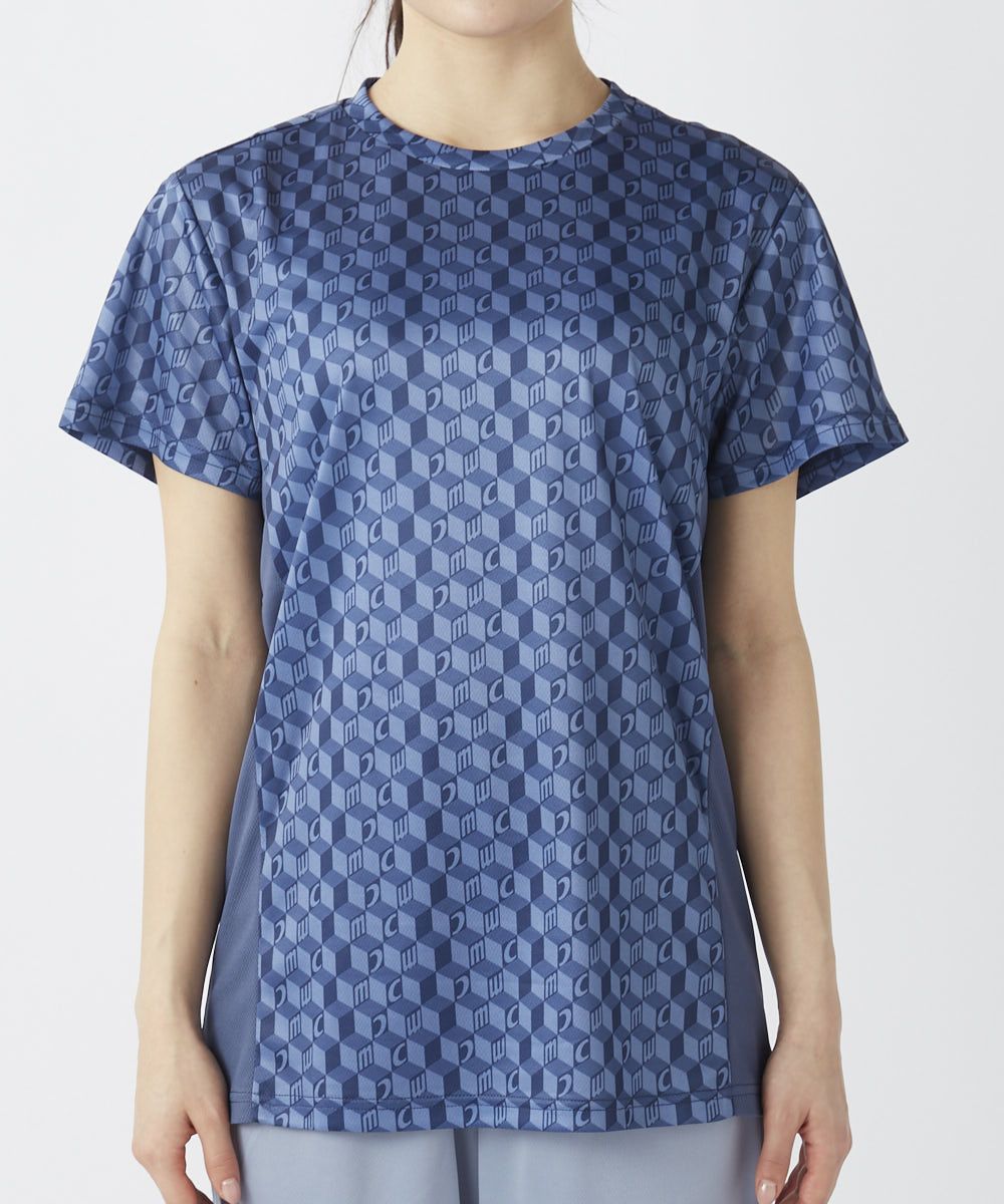 ブロックデザインの総柄がおしゃれな半袖Tシャツ。