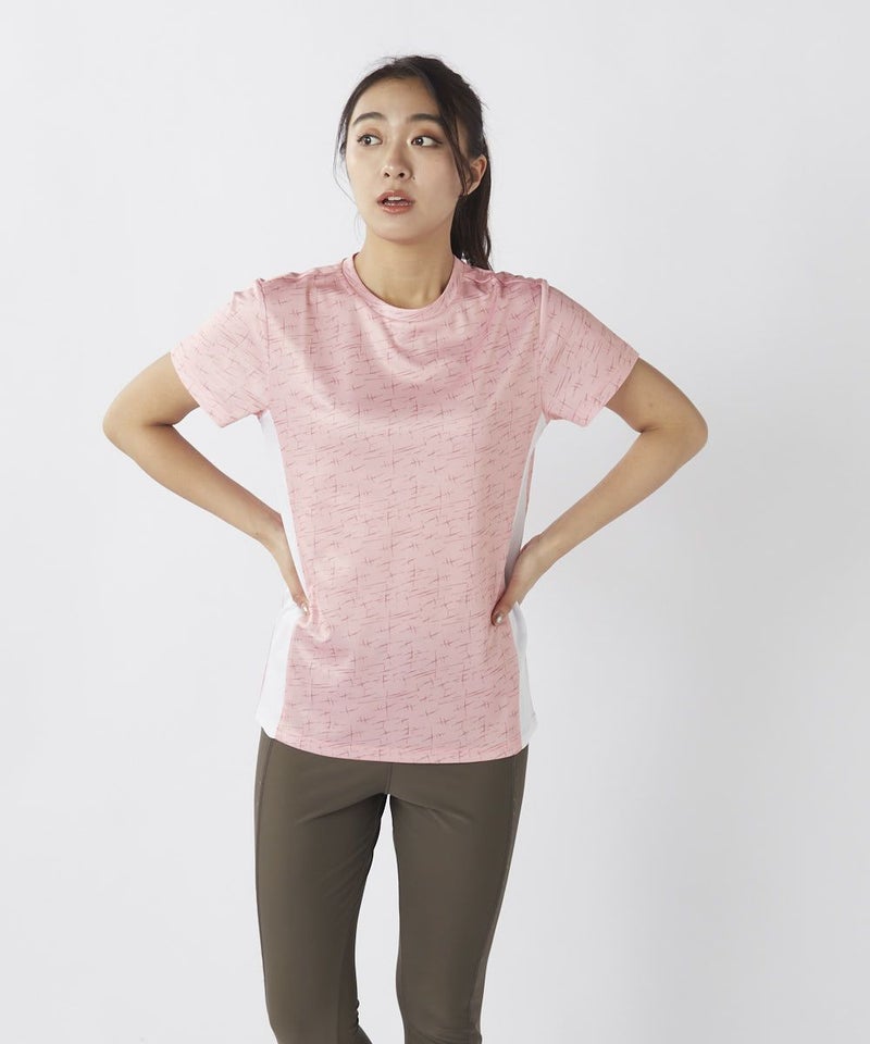 サイドは無地の切り替えですっきりと細見え効果のあるTシャツです。
