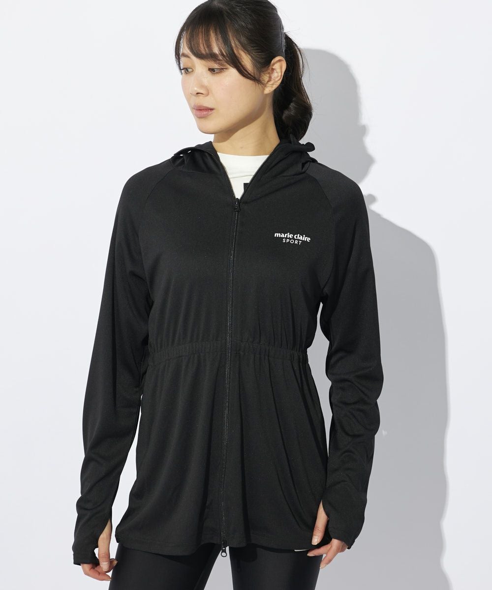 バイザー付きUVパーカーは、フード後ろがドットボタンあきのベンチレーションになっていて、髪の毛を出す こともできます。様々なヘアスタイルに対応可能。夏の暑い日も、フード後ろを開けることで熱を逃すことがで きます。フェイスカバー付き。首やデコルテを日差しからしっかりカバー。サムホール付きで、手の甲までカバ ー。長めのたけでお尻まで隠れるので、体型もカバーできます。胸元には、marie claireのブラン ドロゴのプリント。