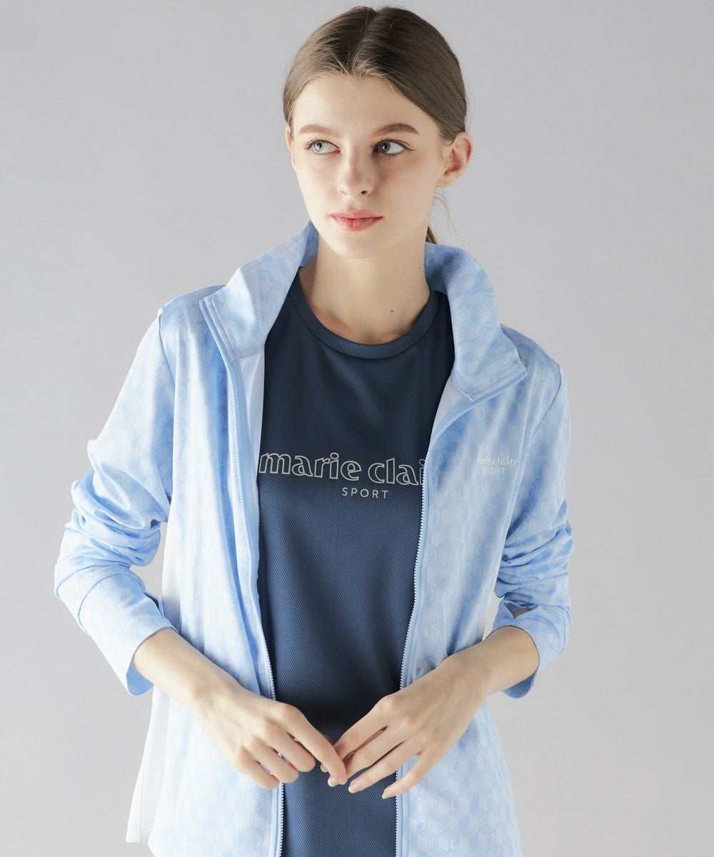 脇の切り替えがシルエットをすっきりと見せてくれる長袖のUVジャケット。衿も高めの設定なので気になる首 元の紫外線もしっかり対策してくれます。パリから届いたオシャレな総柄はトーンカラーなので派手過ぎず、羽 織るとコーディネートのポイントになること間違いなし。