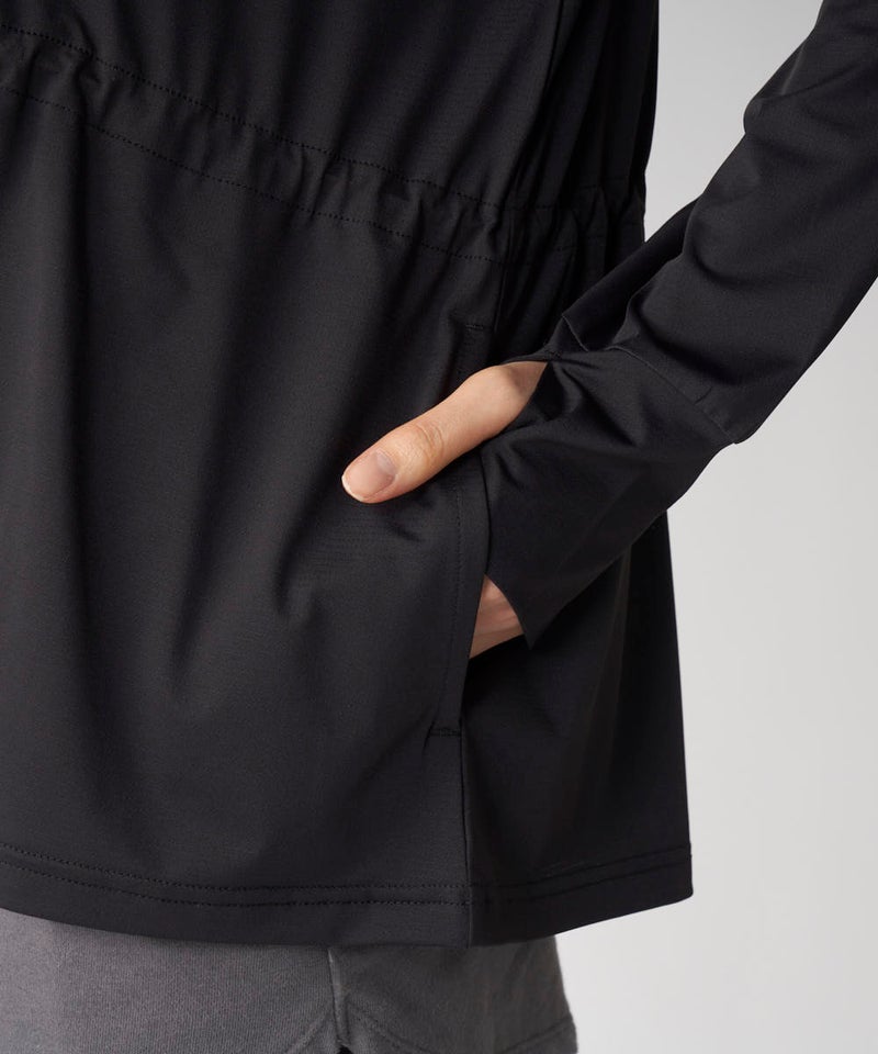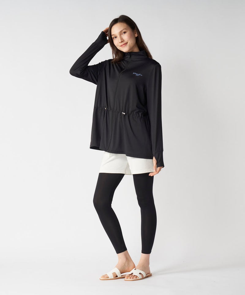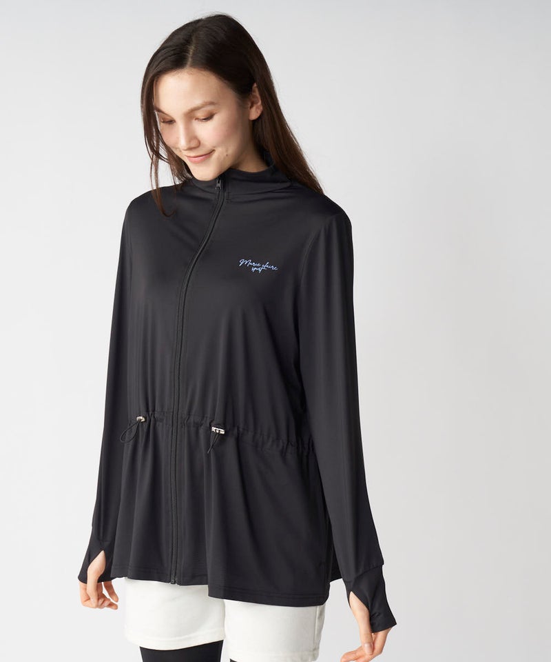 【3L~5Lサイズ】ウエスト部分の調節が可能で、ギャザーになるデザインが女性らしいUVジャケット。接触冷感、UVカット機能付きで、日差しから肌を守ります。