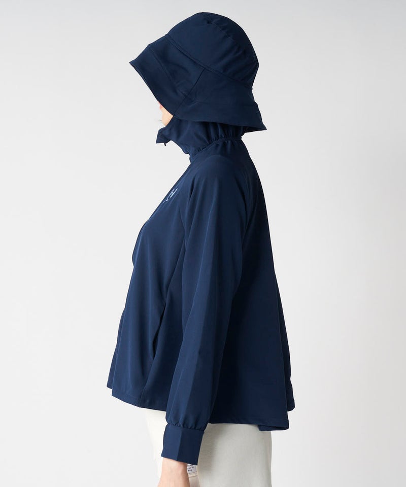 ハット付きで全力UV対策ジャケット!気になるお顔周りはもちろん首元までしっかりカバーしてくれるので羽 織るだけで安心!こだわりの裾フレアで風を通しやすく暑い夏に大活躍間違いなし。