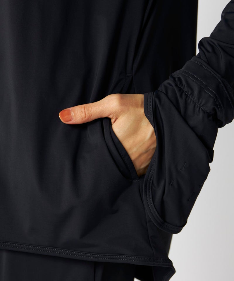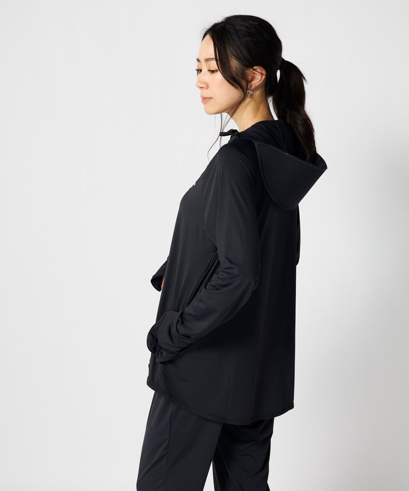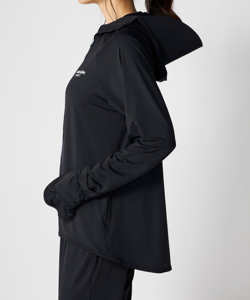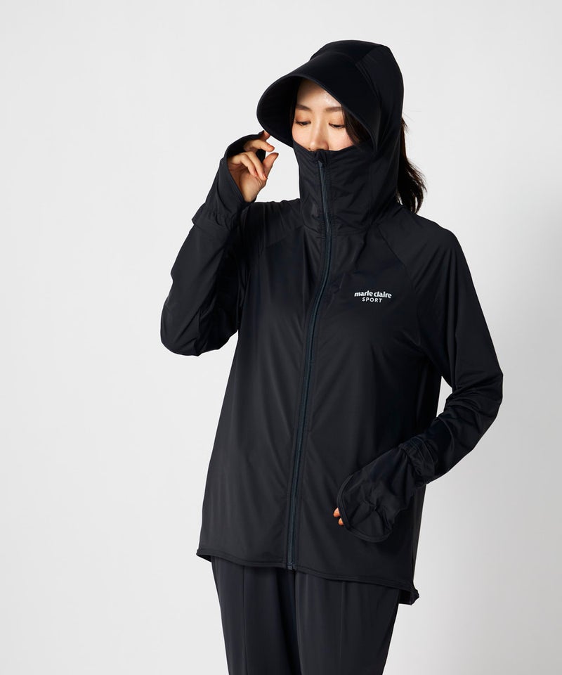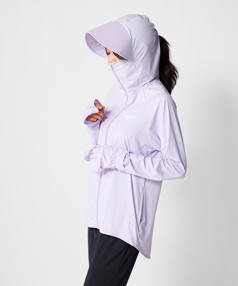 サンバイザーと手の甲はもちろん指先まで覆うアームカバー一体型なので羽織るだけでUV対策が叶うジャケッ ト。暑い夏にストレスフリーな裾フレアで風を通して涼しくUV対策!また究極のクールタッチ素材Super Nylon Cool(SNC)使用。機能も接触冷感・吸汗速乾・UV遮蔽率90%以上・対塩素対応。暑 い夏に大活躍間違いなし。