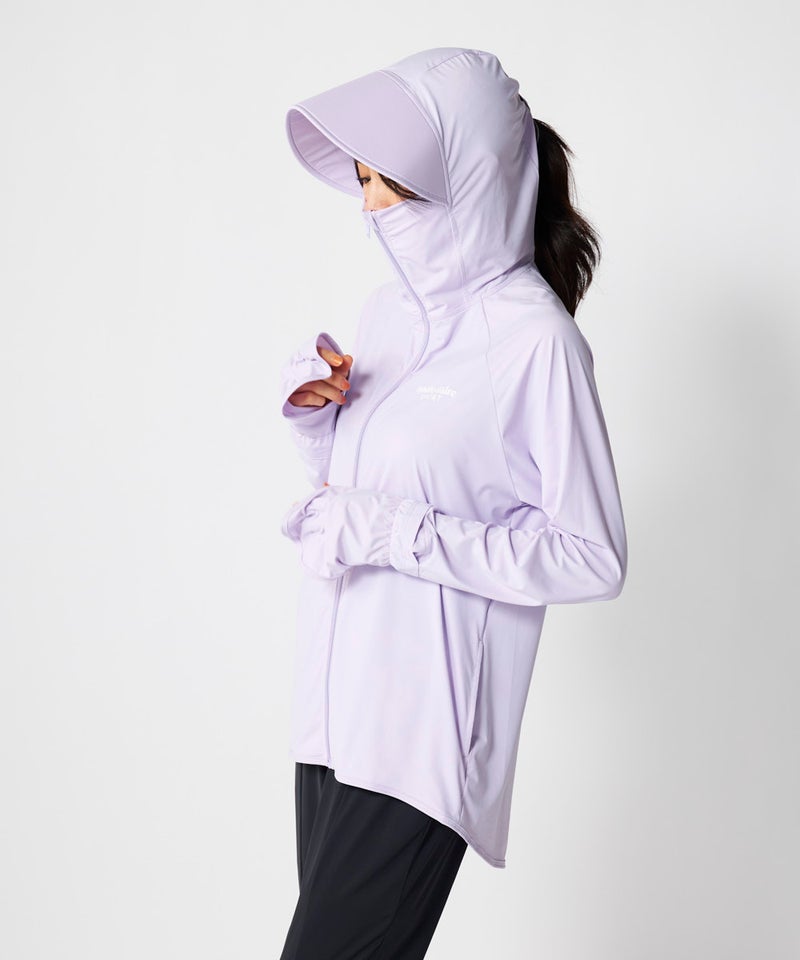 【3L~5Lサイズ】サンバイザーと手の甲はもちろん指先まで覆うアームカバー一体型なので羽織るだけでUV対策が叶うジャケッ ト。暑い夏にストレスフリーな裾フレアで風を通して涼しくUV対策!また究極のクールタッチ素材Super Nylon Cool(SNC)使用。機能も接触冷感・吸汗速乾・UV遮蔽率90%以上・対塩素対応。暑 い夏に大活躍間違いなし。