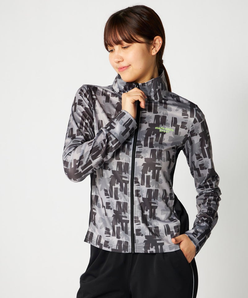 スポーツはもちろんカジュアルなシーンに活躍してくれるカモフラージュ風フラワー柄が可愛い総柄ジャケット 。脇部分の配色切替えがスッキリした縦ラインでスタイルアップ効果が期待できサッと羽織って暑い夏のUV対 策はもちろん冷房対策もオシャレに応援!UV遮蔽率90%以上